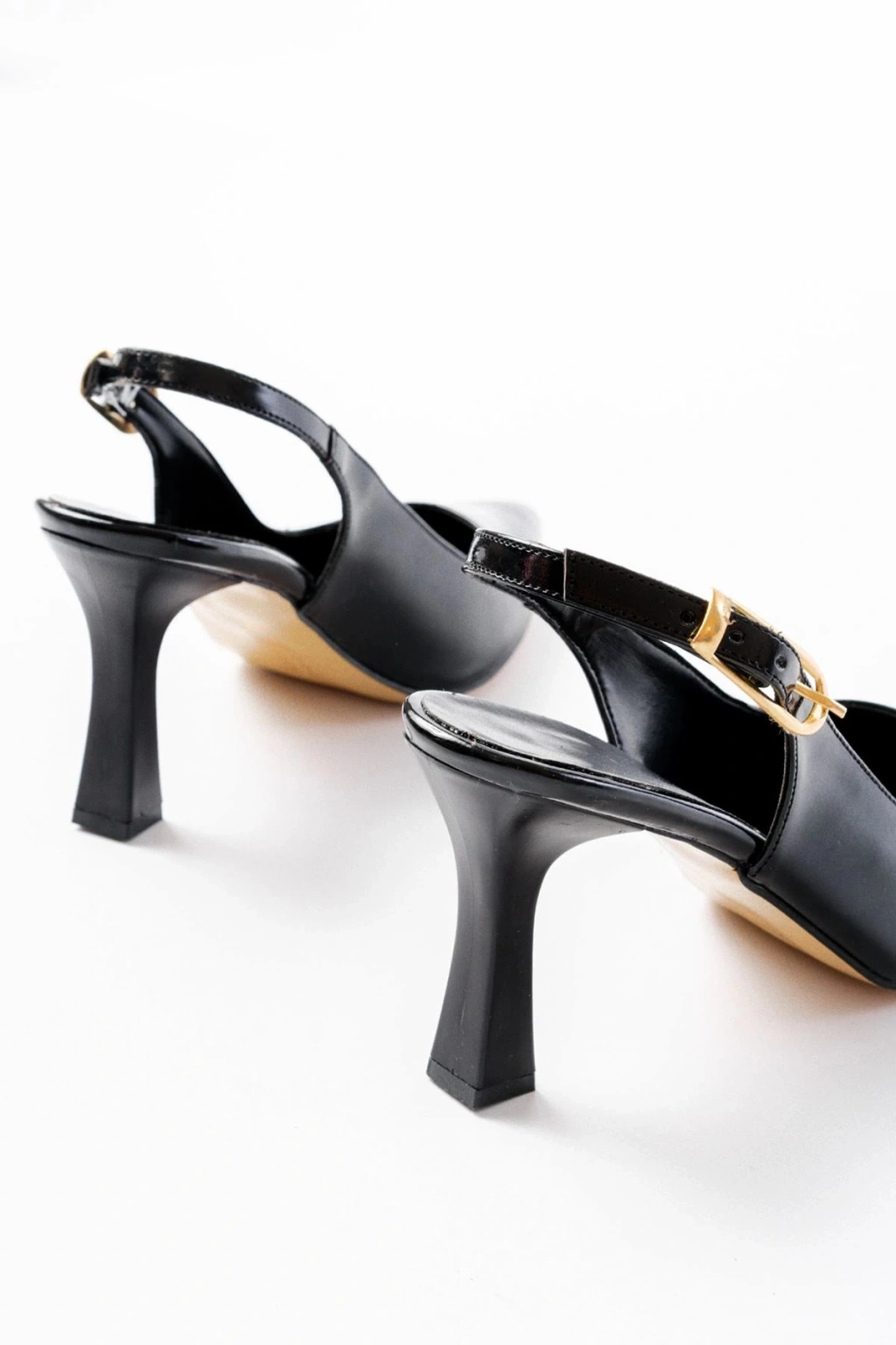 719 Siyah Rugan Sivri Burunlu Toka Detaylı Topuklu Kadın Ayakkabı
