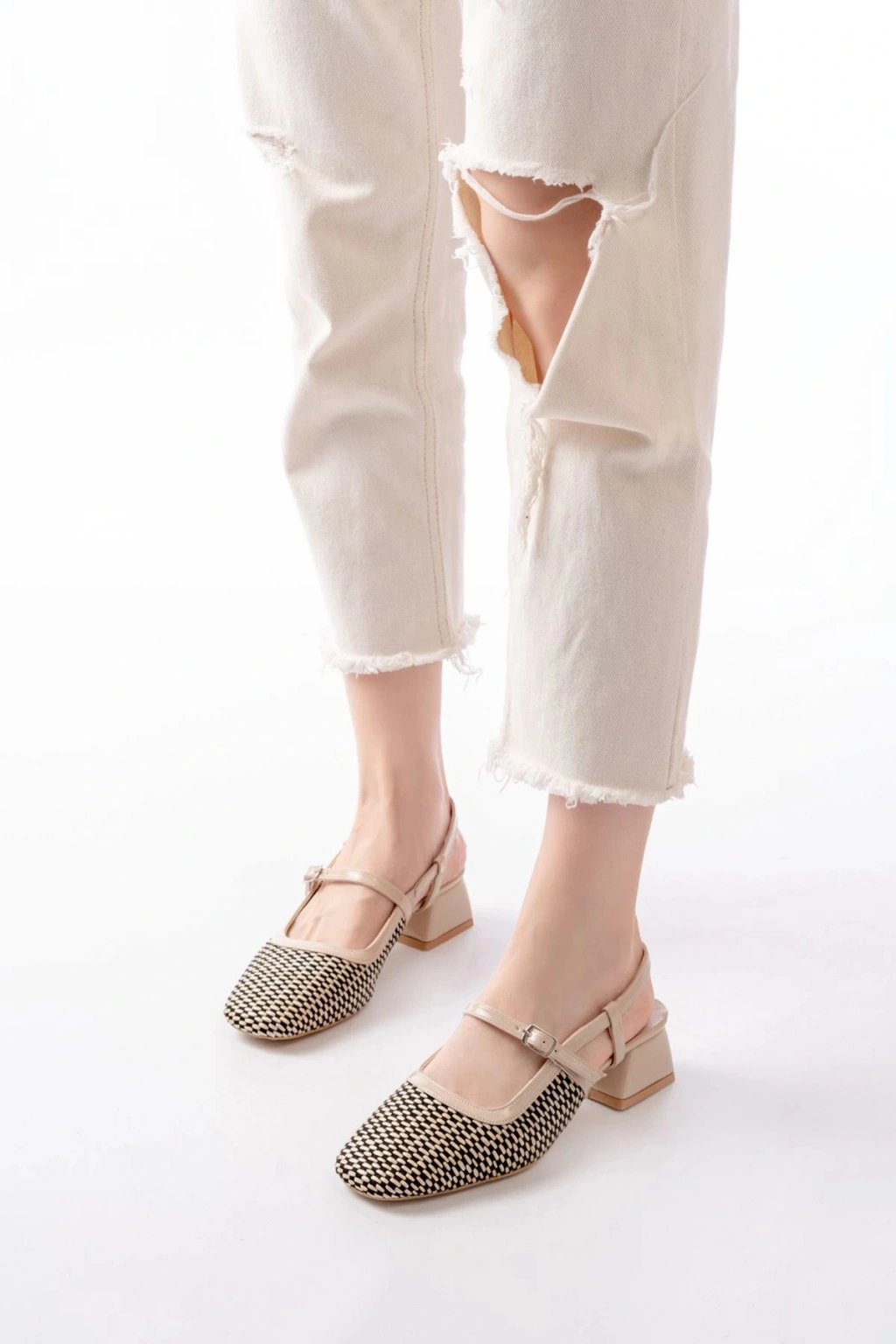 720 Bej Desenli Arkası Açık Günlük Kadın Sandalet