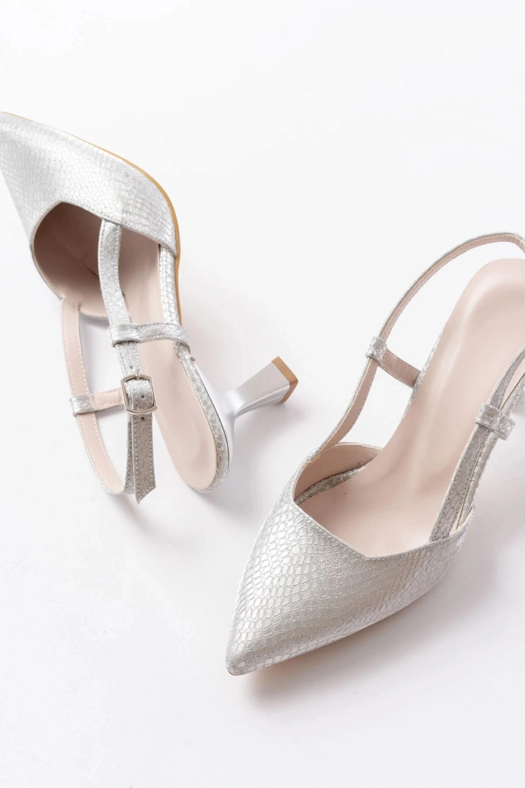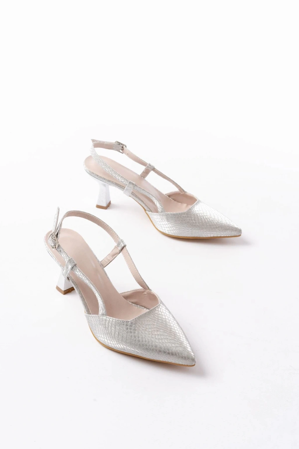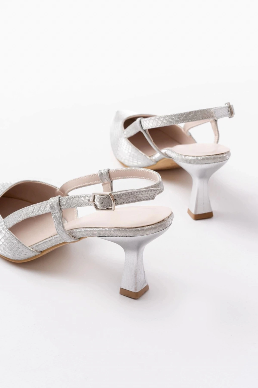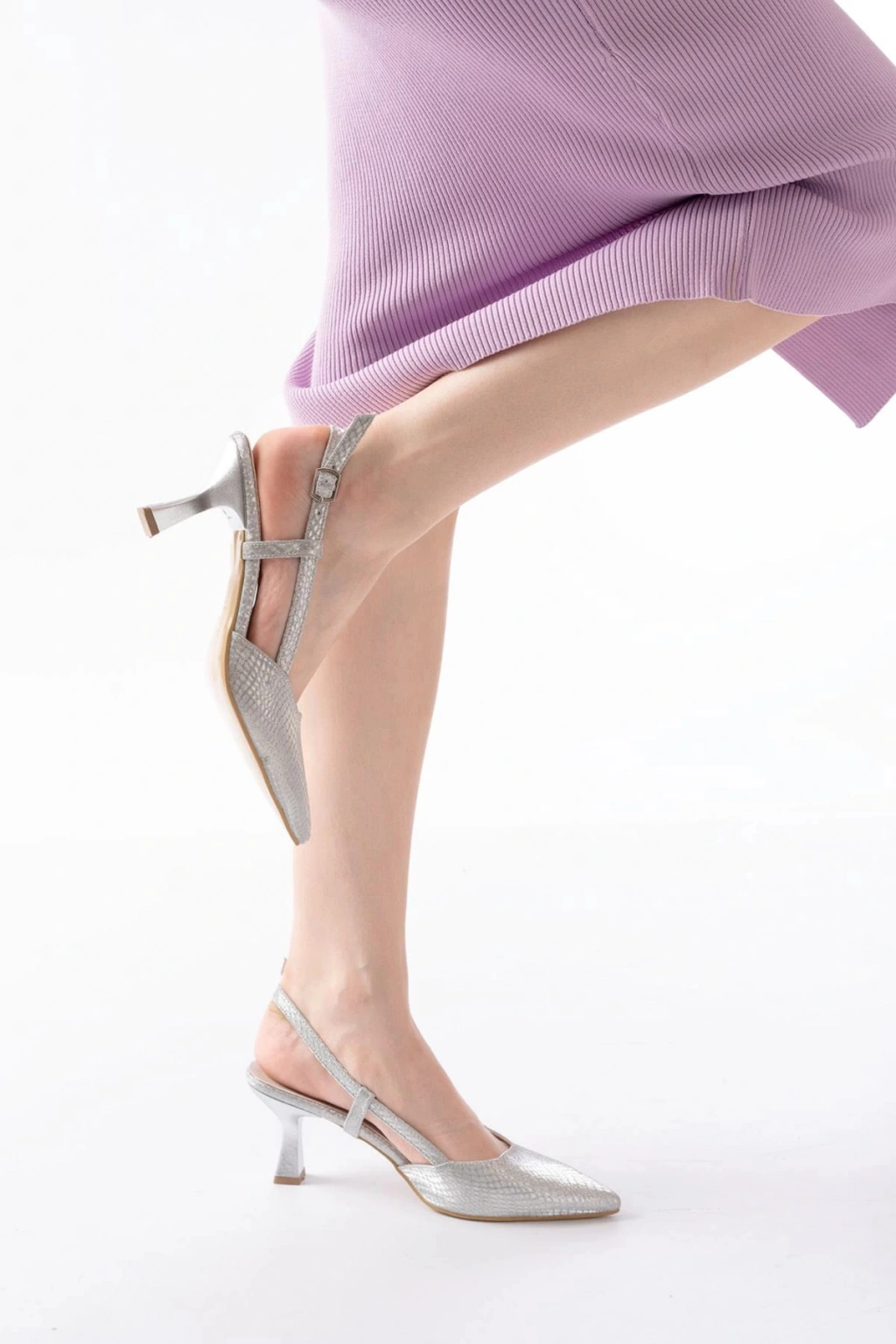 725 Gümüş Pul Desenli Sivri Burunlu Topuklu Kadın Ayakkabı