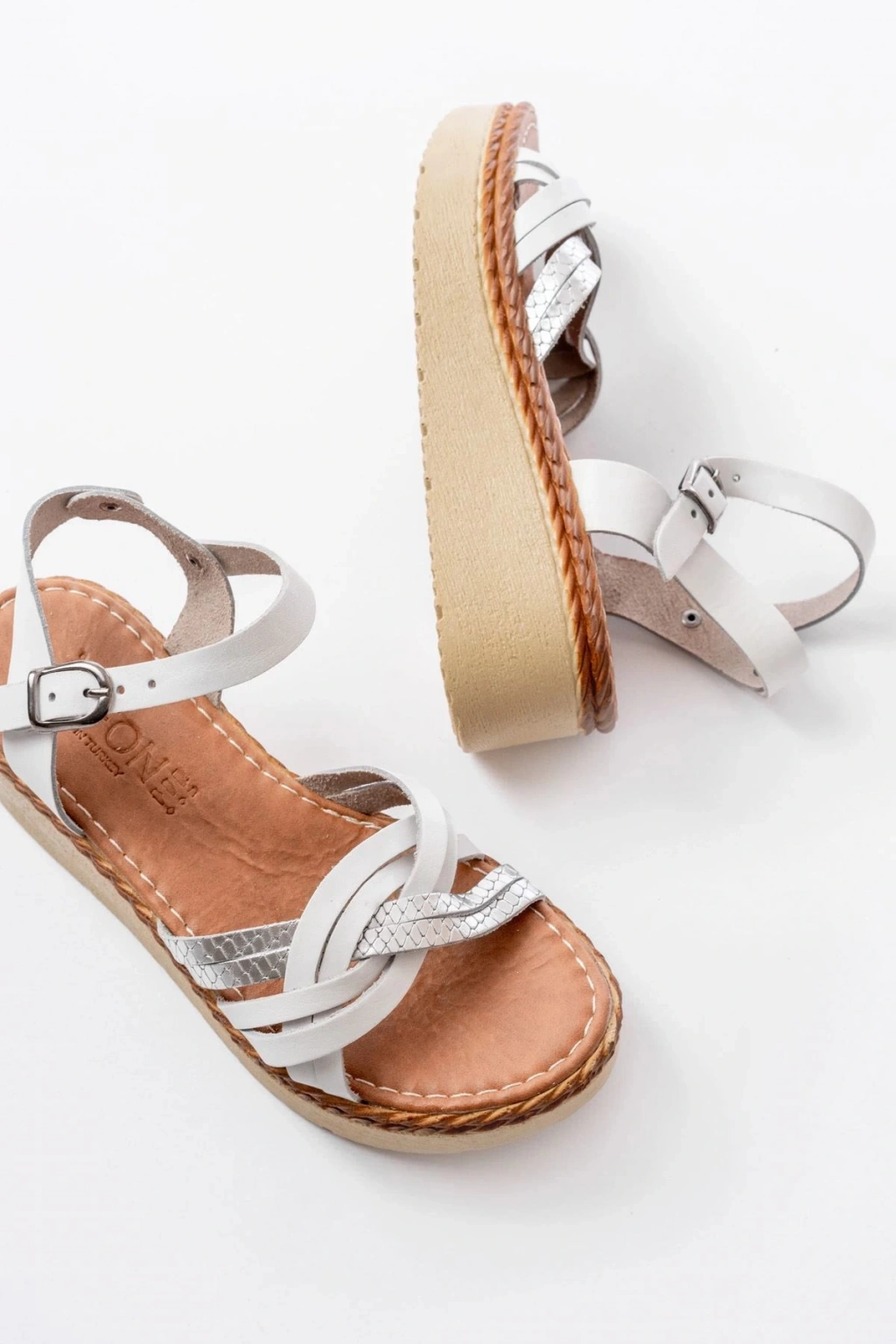730-037 Beyaz Ayna Hakiki Deri Ortopedik Taban Kadın Sandalet