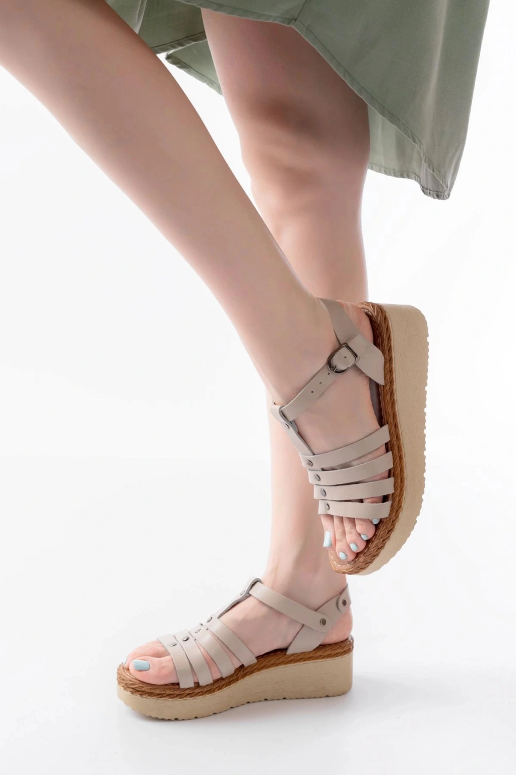 861-1016 Bej Dolgu Kadın Sandalet