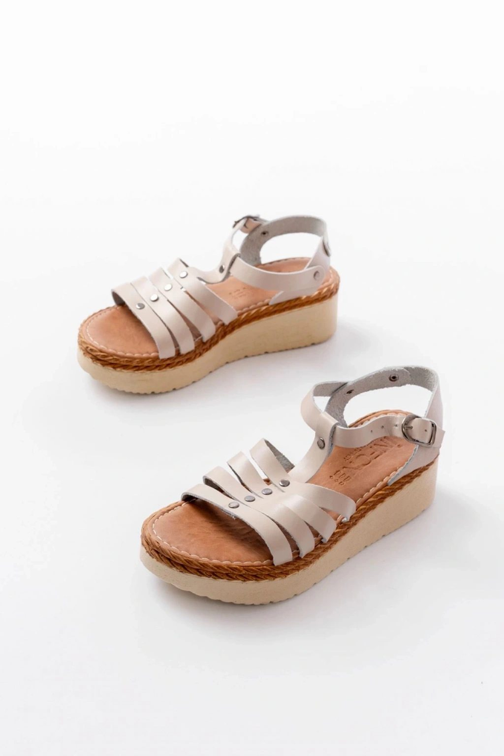 730-015 Bej Garni Ortopedik Hakiki Deri Dolgu Kadın Sandalet