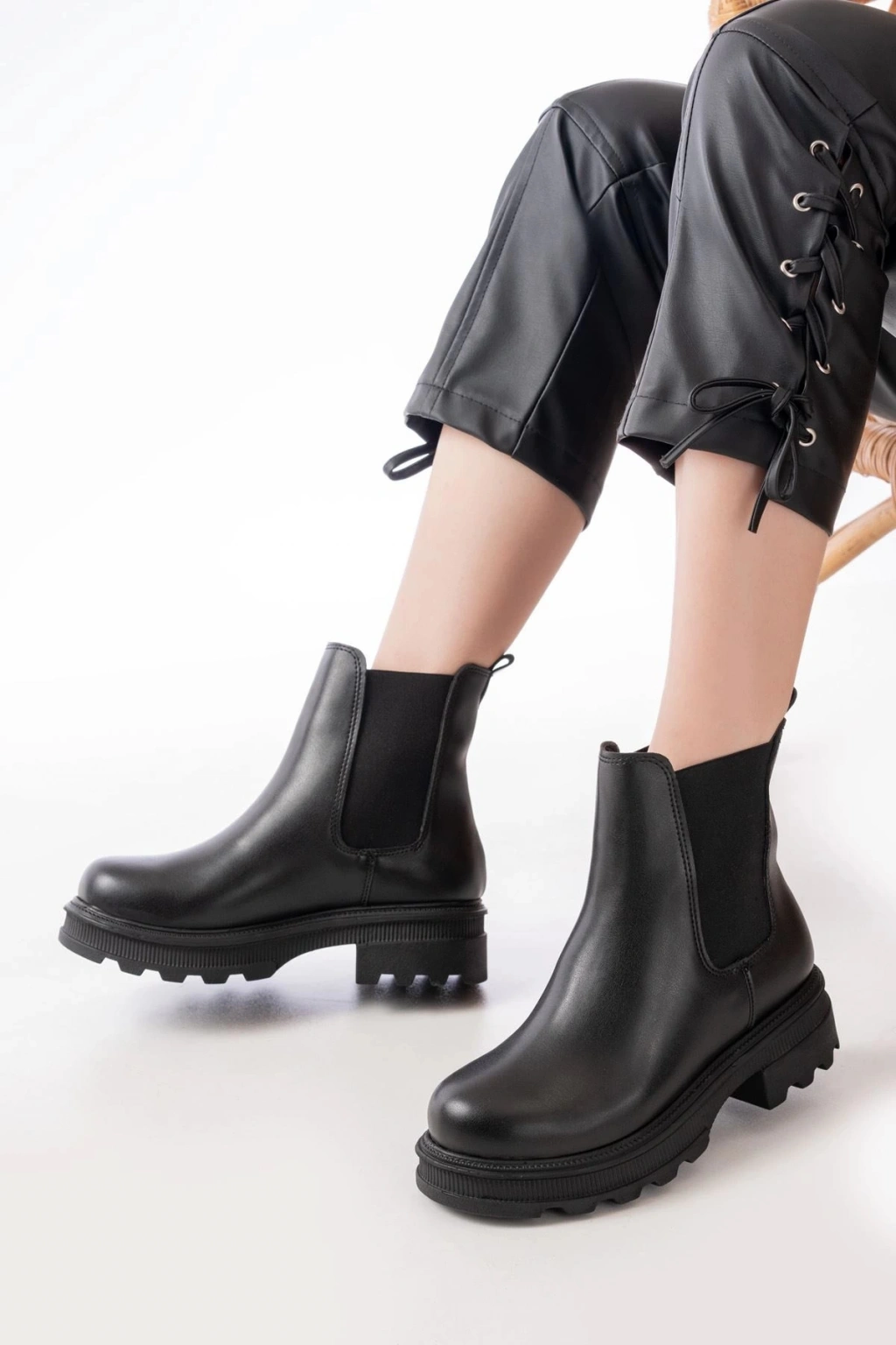 745-2137 Siyah Kalın Taban Lastikli Günlük Kadın Bot