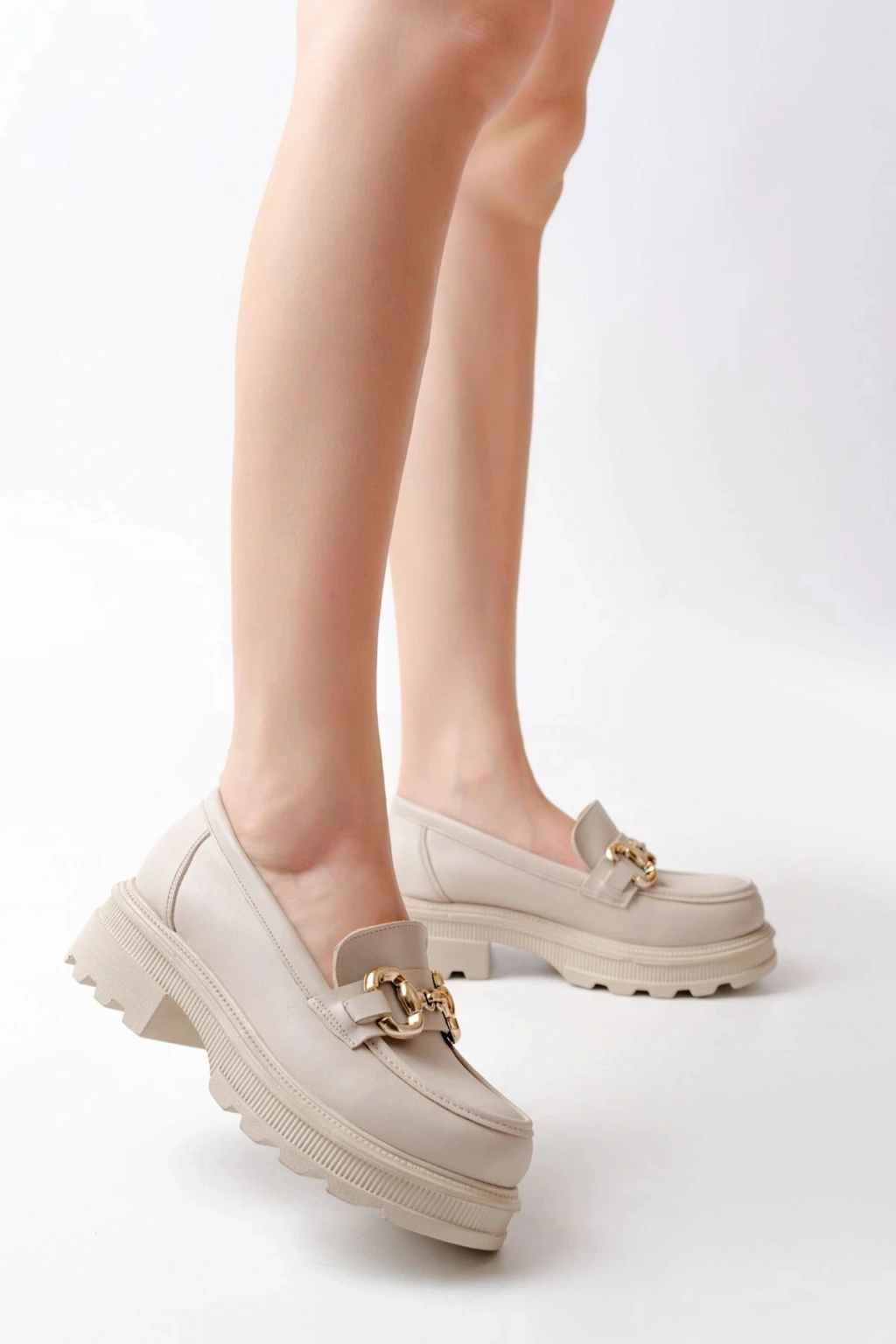 749-750 Bej Tokalı Günlük Yüksek Tabanlı Loafer Ayakkabı