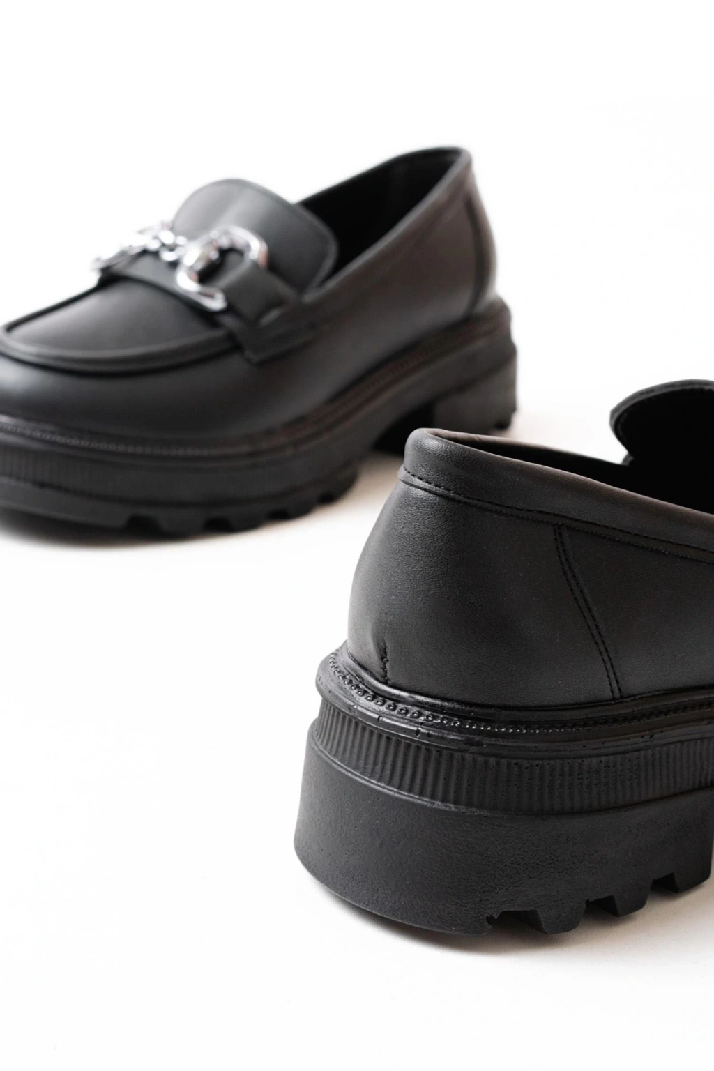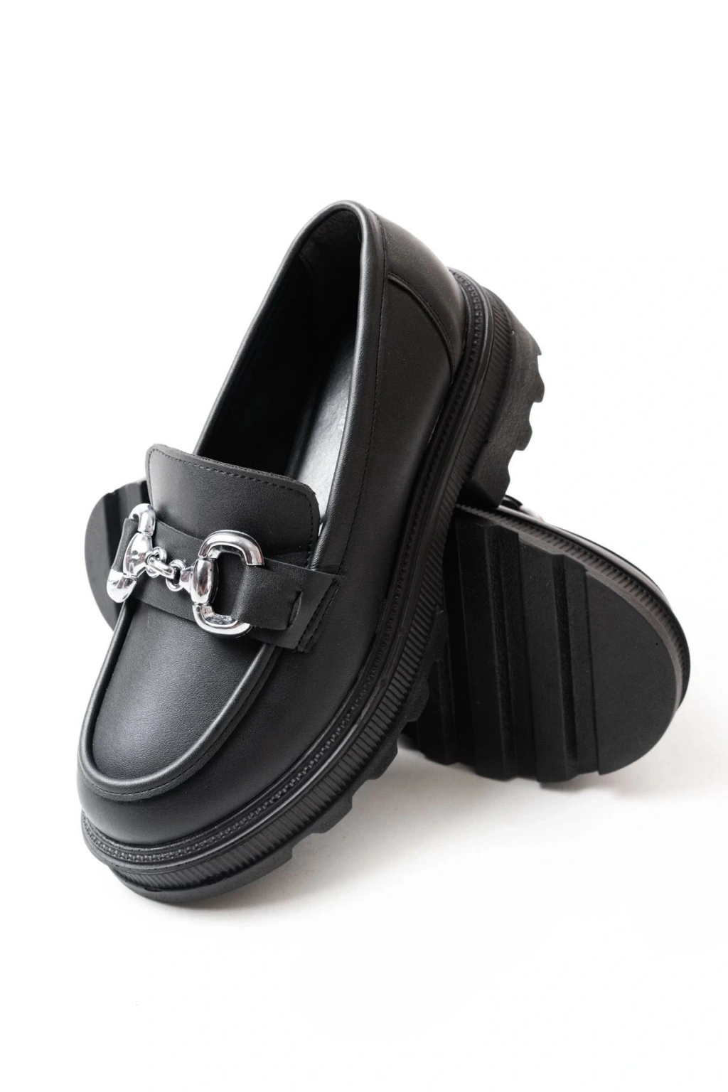 749-750 Siyah Tokalı Günlük Yüksek Tabanlı Loafer Ayakkabı