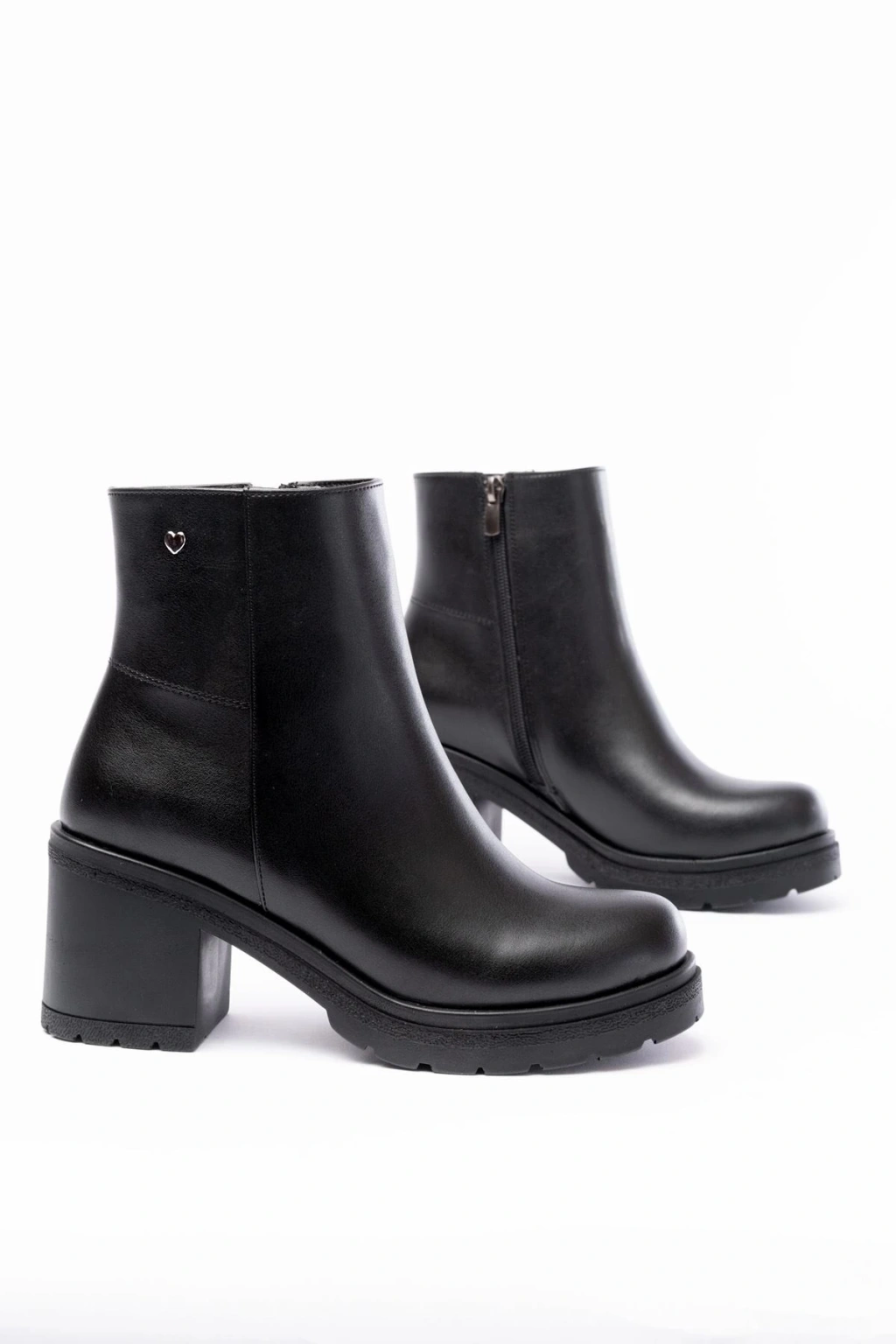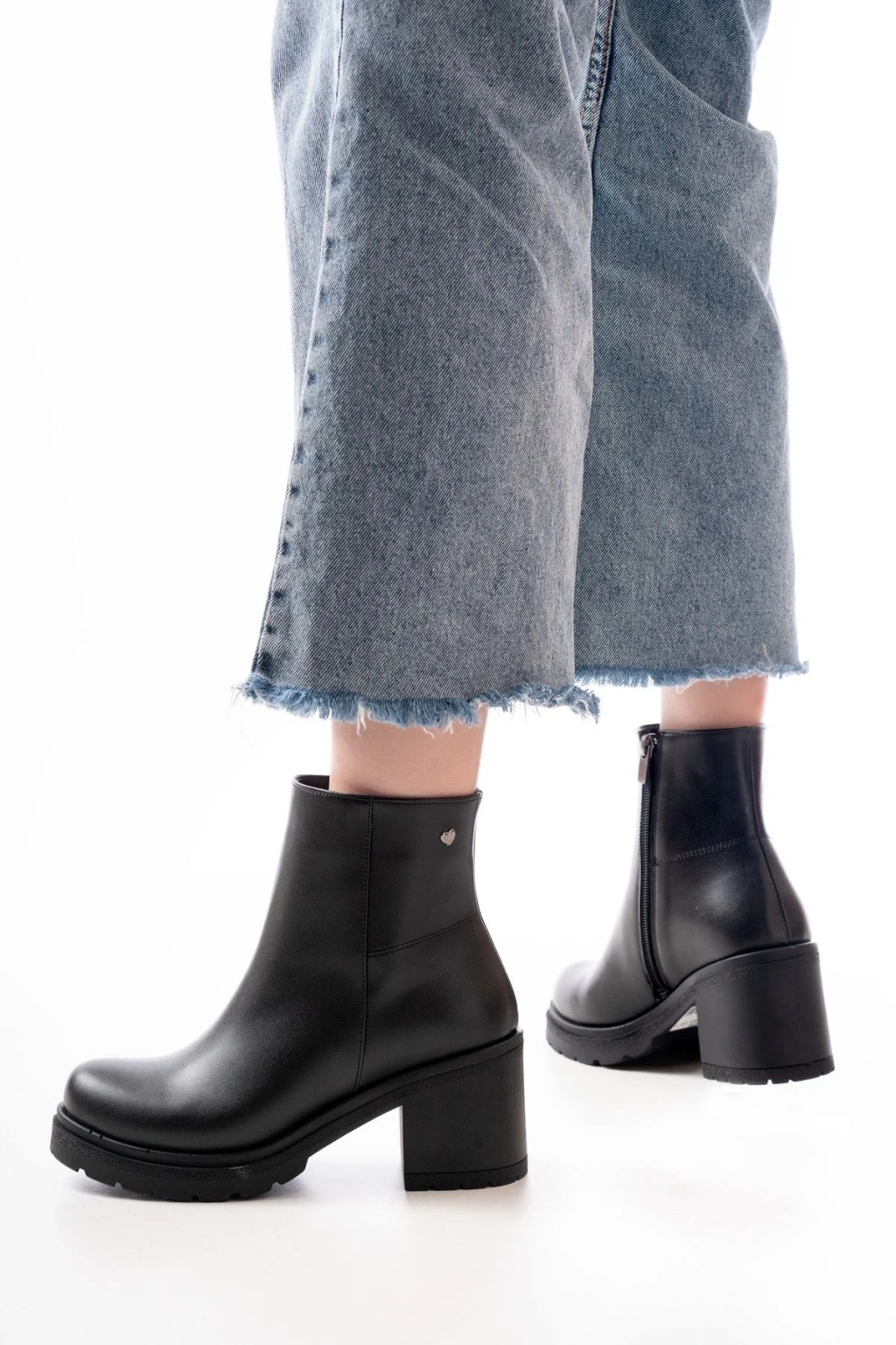 767-3020 Siyah Fermuarlı Kalın Topuklu Günlük Kadın Bot