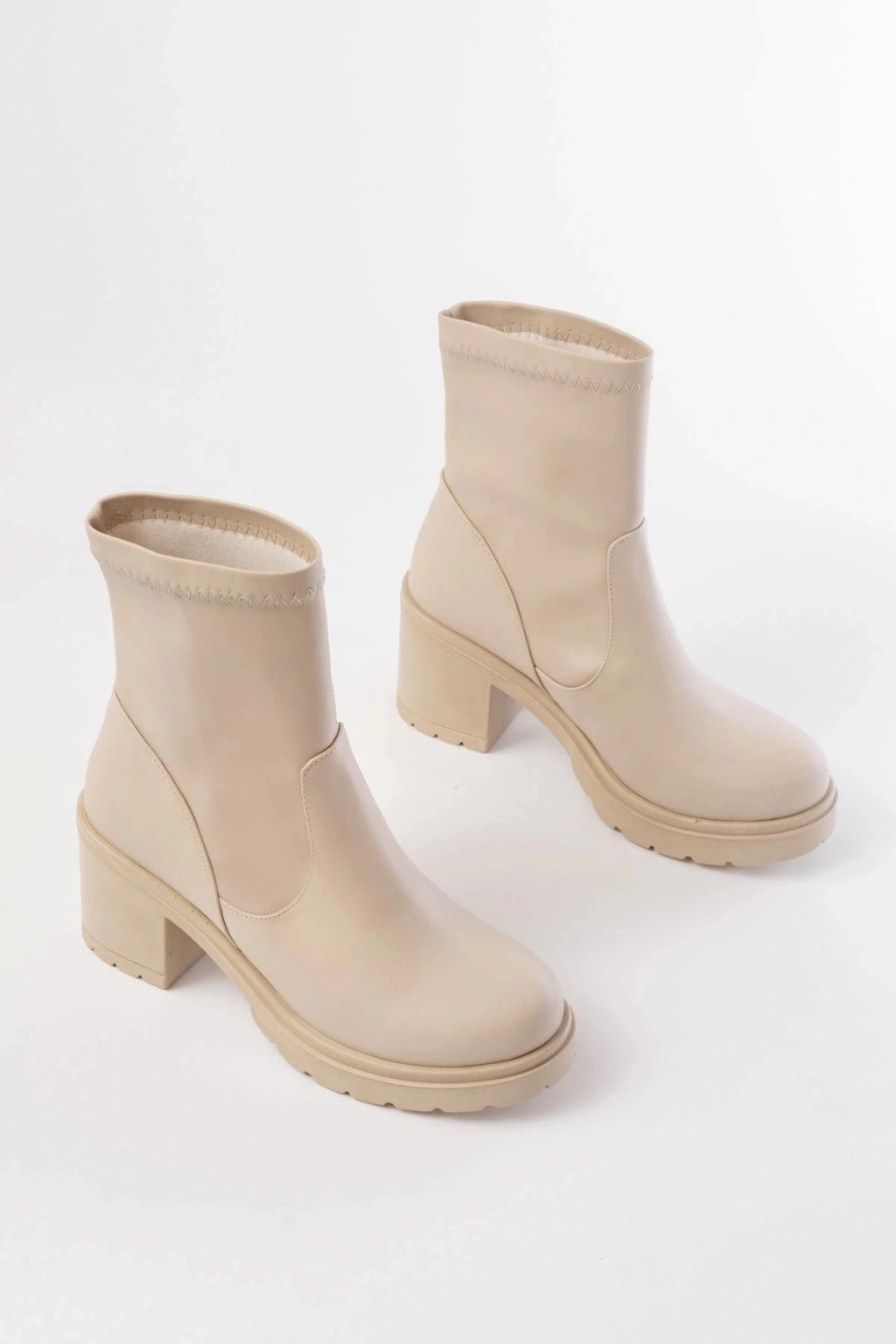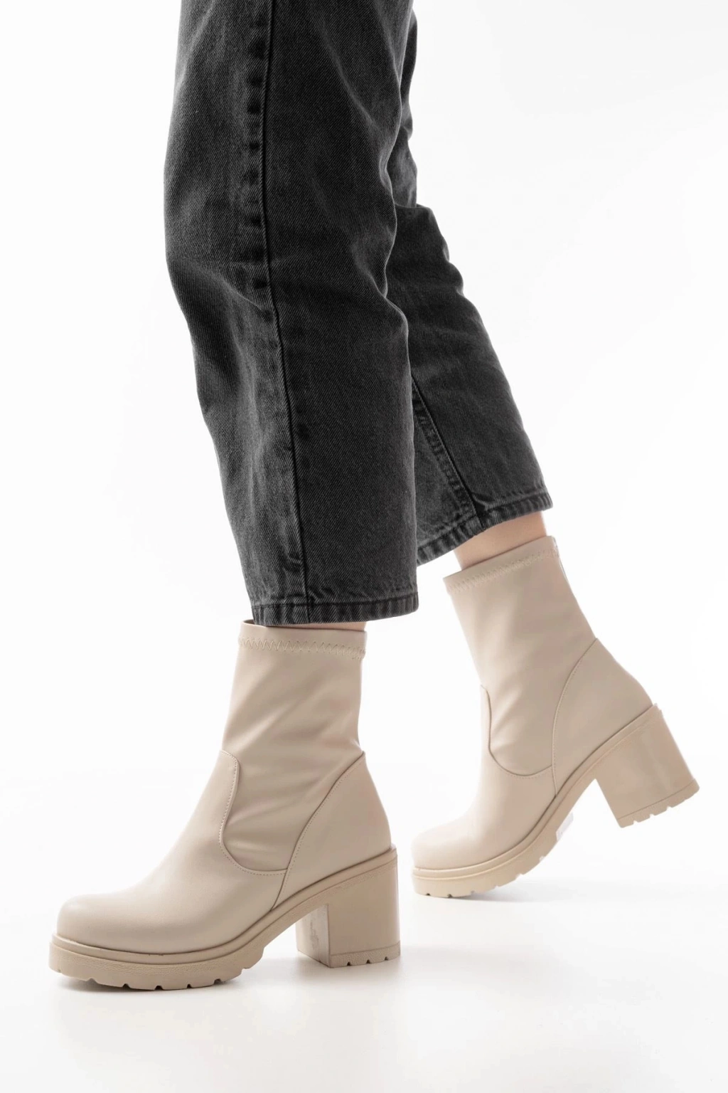 767-3040 Bej Günlük Kalın Topuklu Kadın Bot