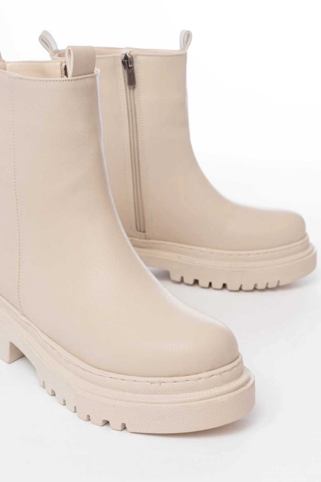 508-3038 Bej Toka Aksesuarlı Fermuarlı Günlük Kadın Bot