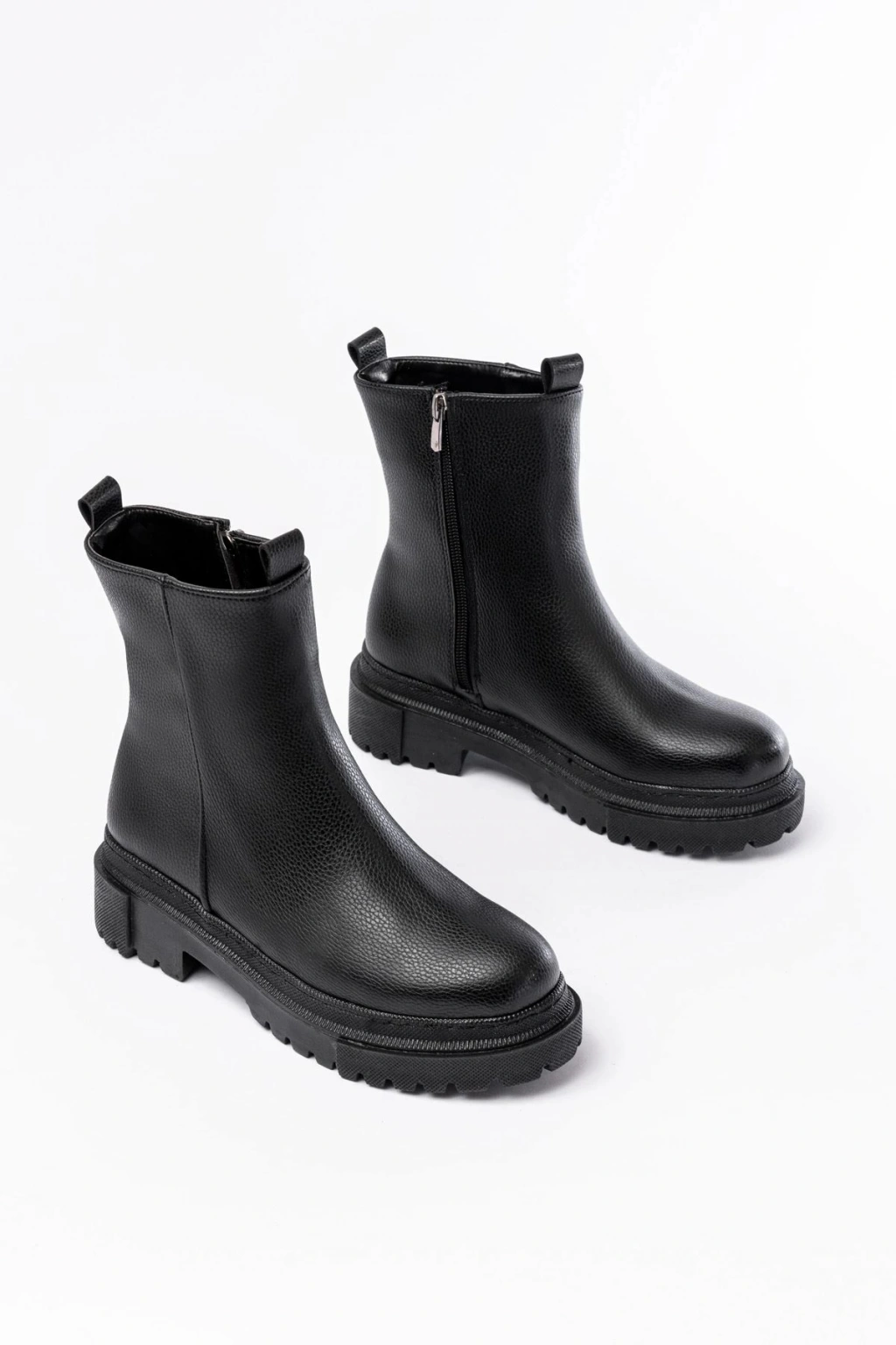 842-2961 Siyah Bağcıklı Kalın Tabanlı Fermuarlı Günlük Kadın Bot
