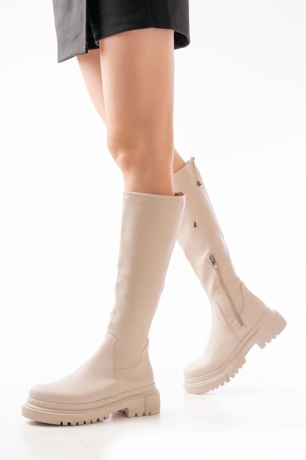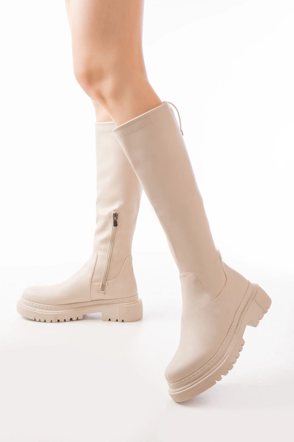 812-2291 Bej Fermuarlı Günlük Kadın Çizme