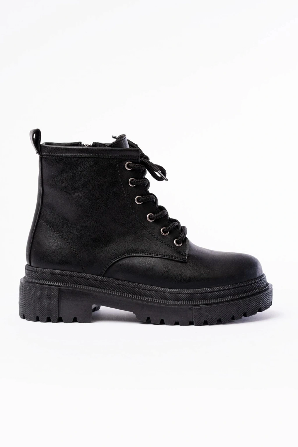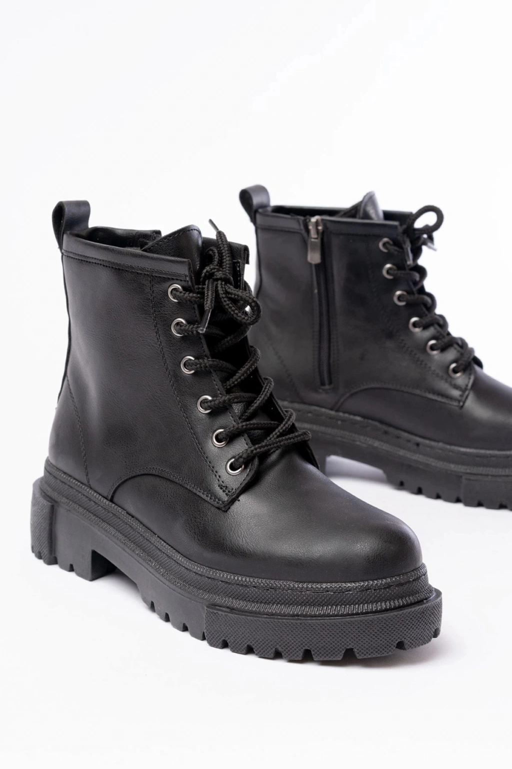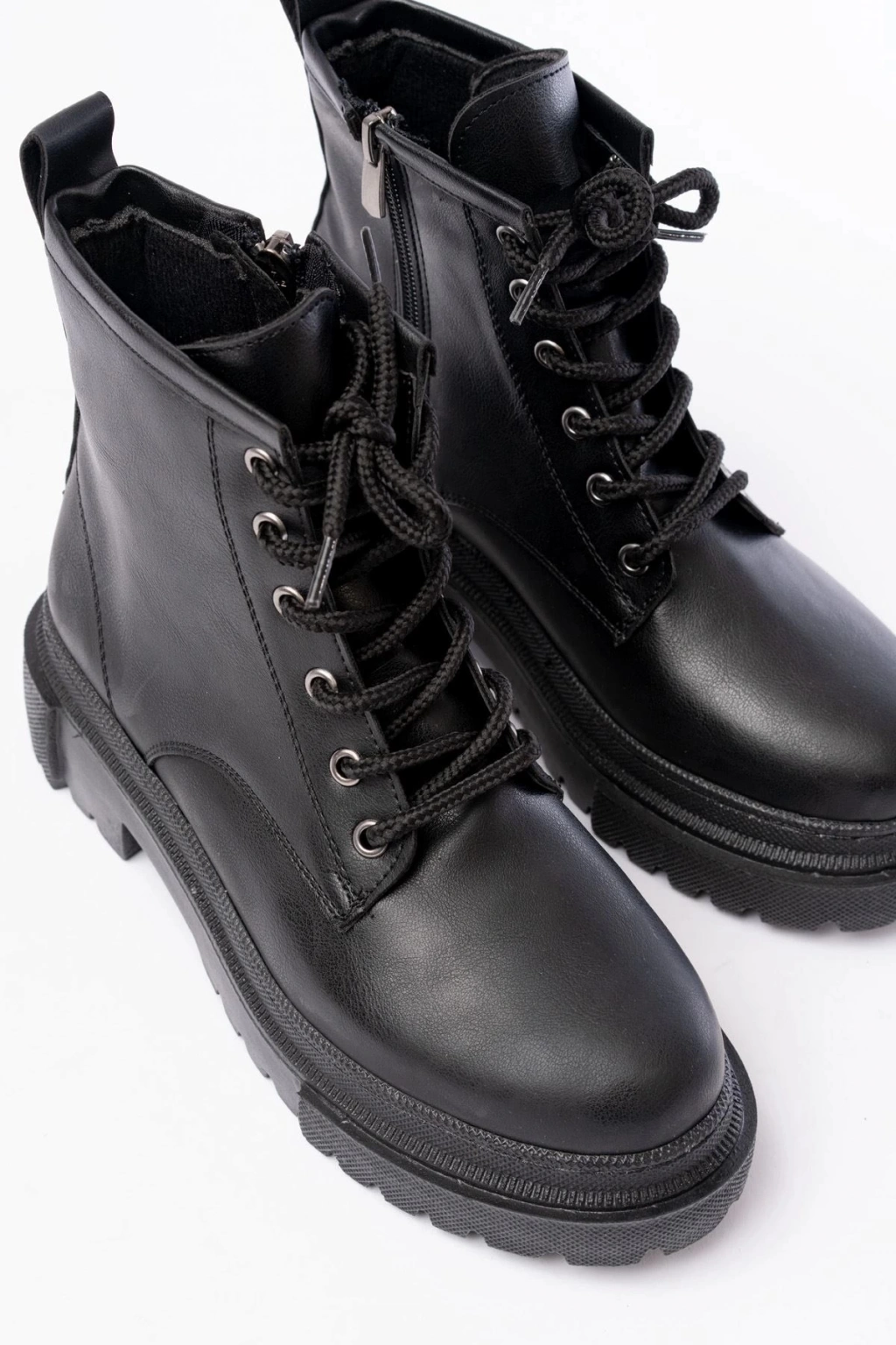 842-2961 Siyah Bağcıklı Kalın Tabanlı Fermuarlı Günlük Kadın Bot
