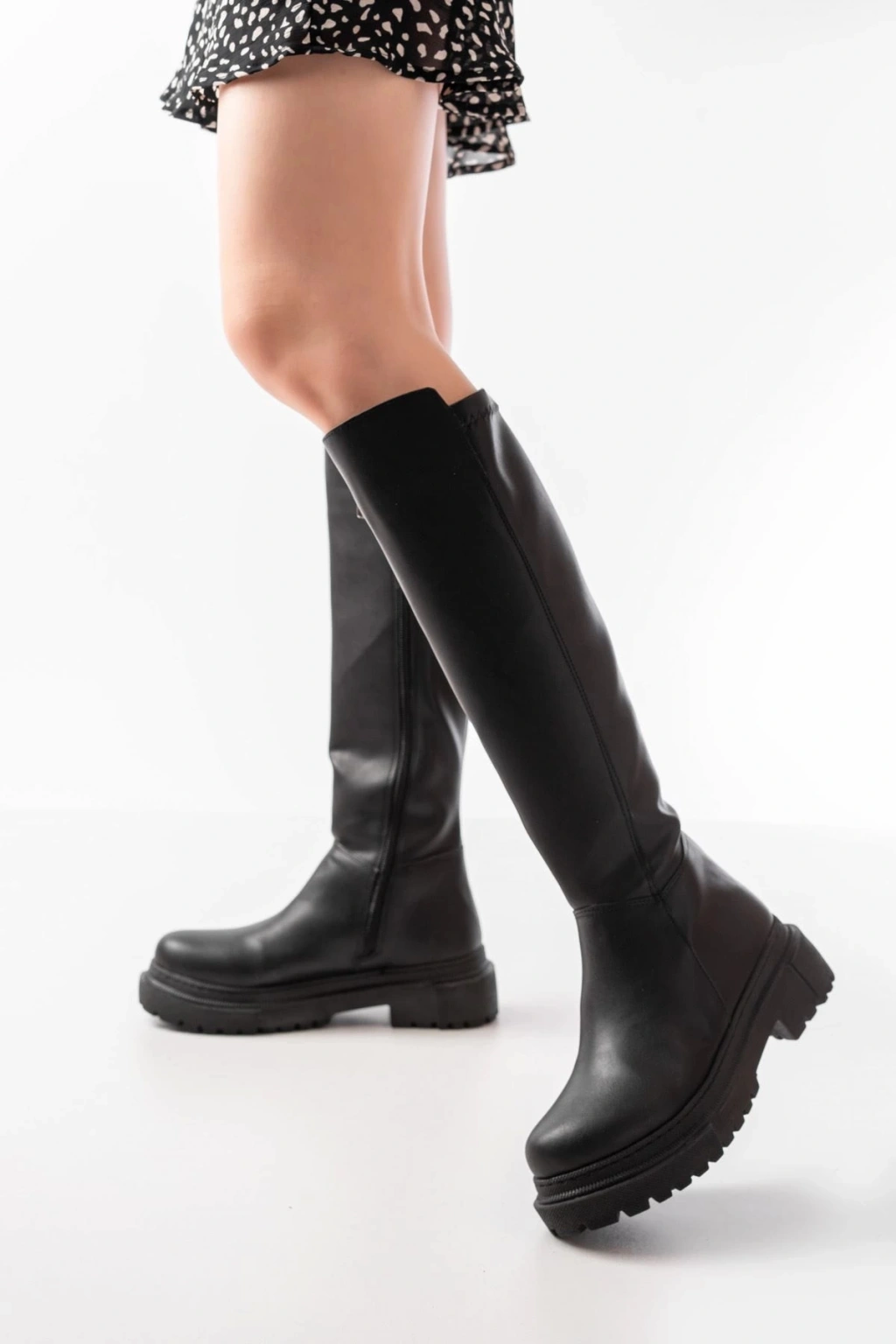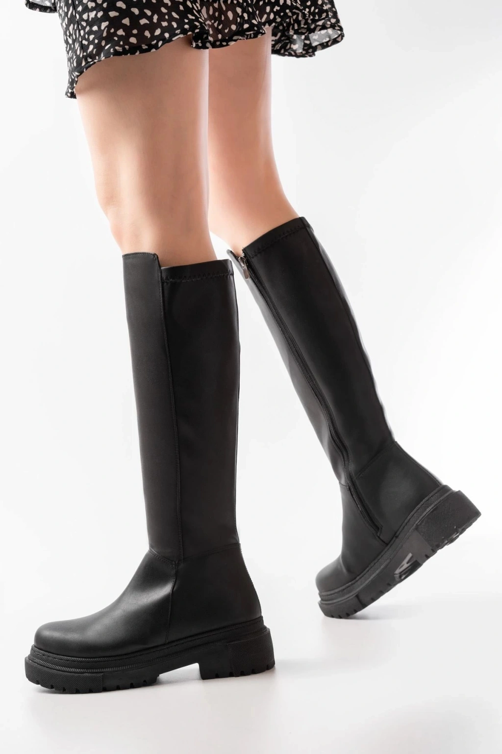 767-3010 Siyah Streç Günlük Kalın Topuklu Kadın Çizme