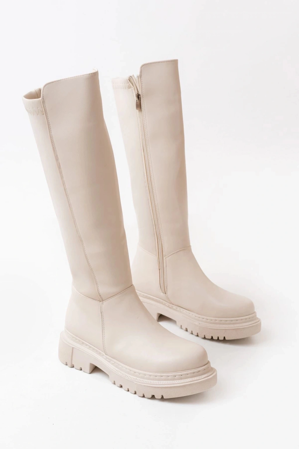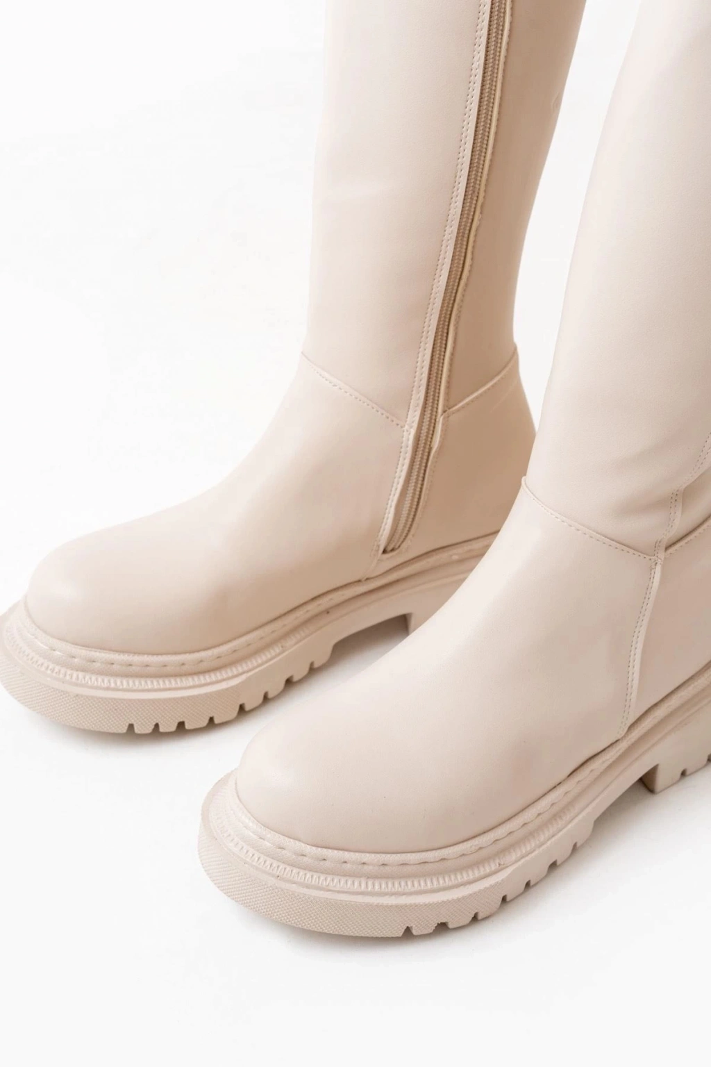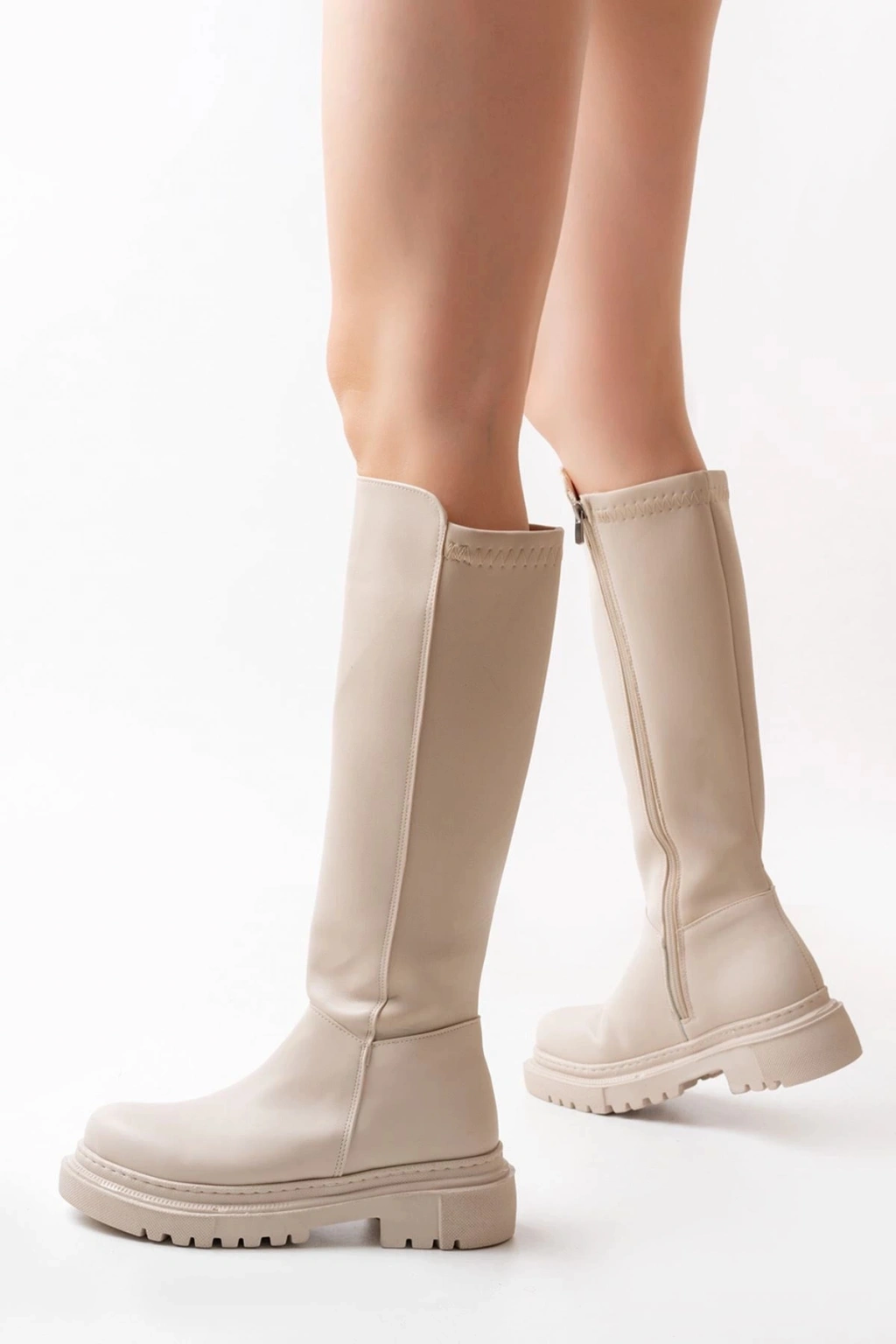 812-305 Bej Arkası Streç Fermuarlı Günlük Kadın Çizme