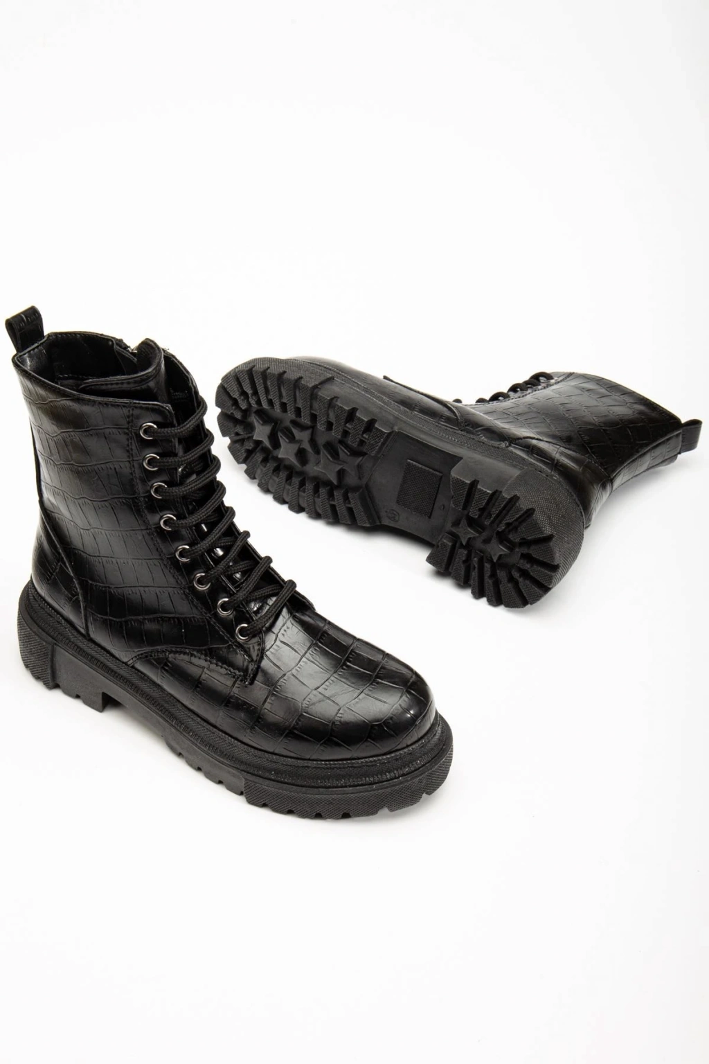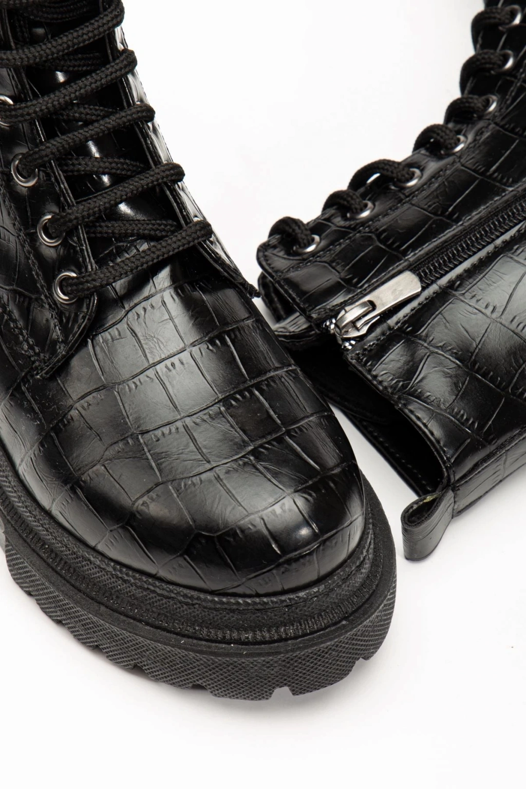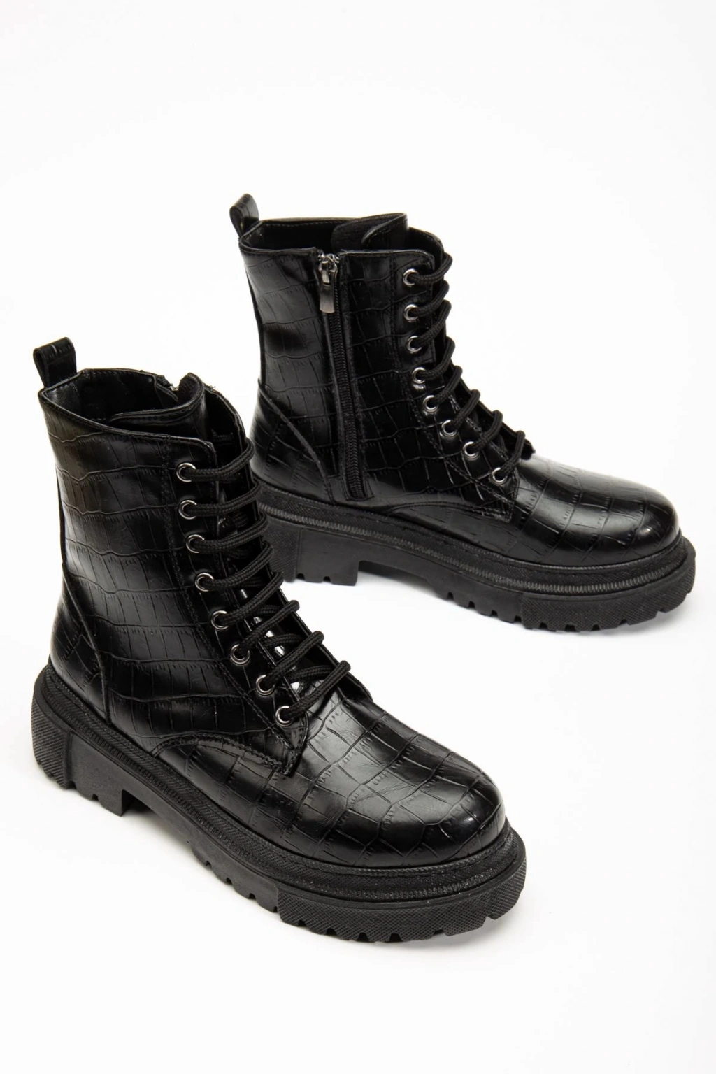 812-356 Siyah Kroko Bağcıklı Fermuarlı Günlük Kadın Bot