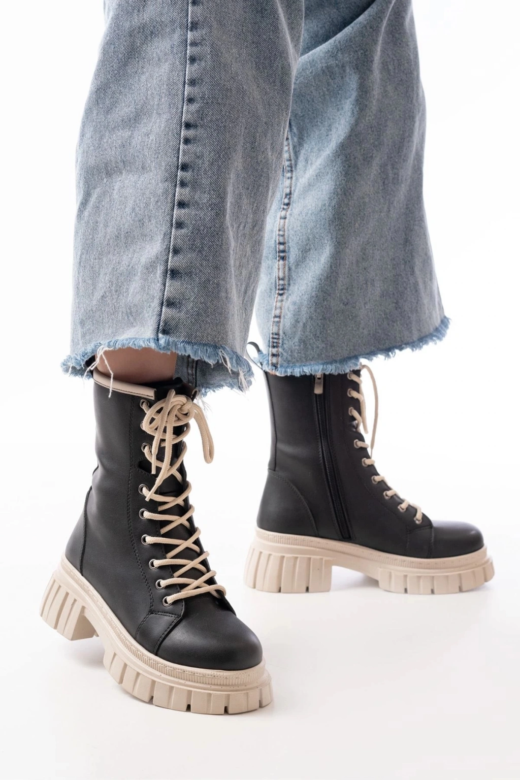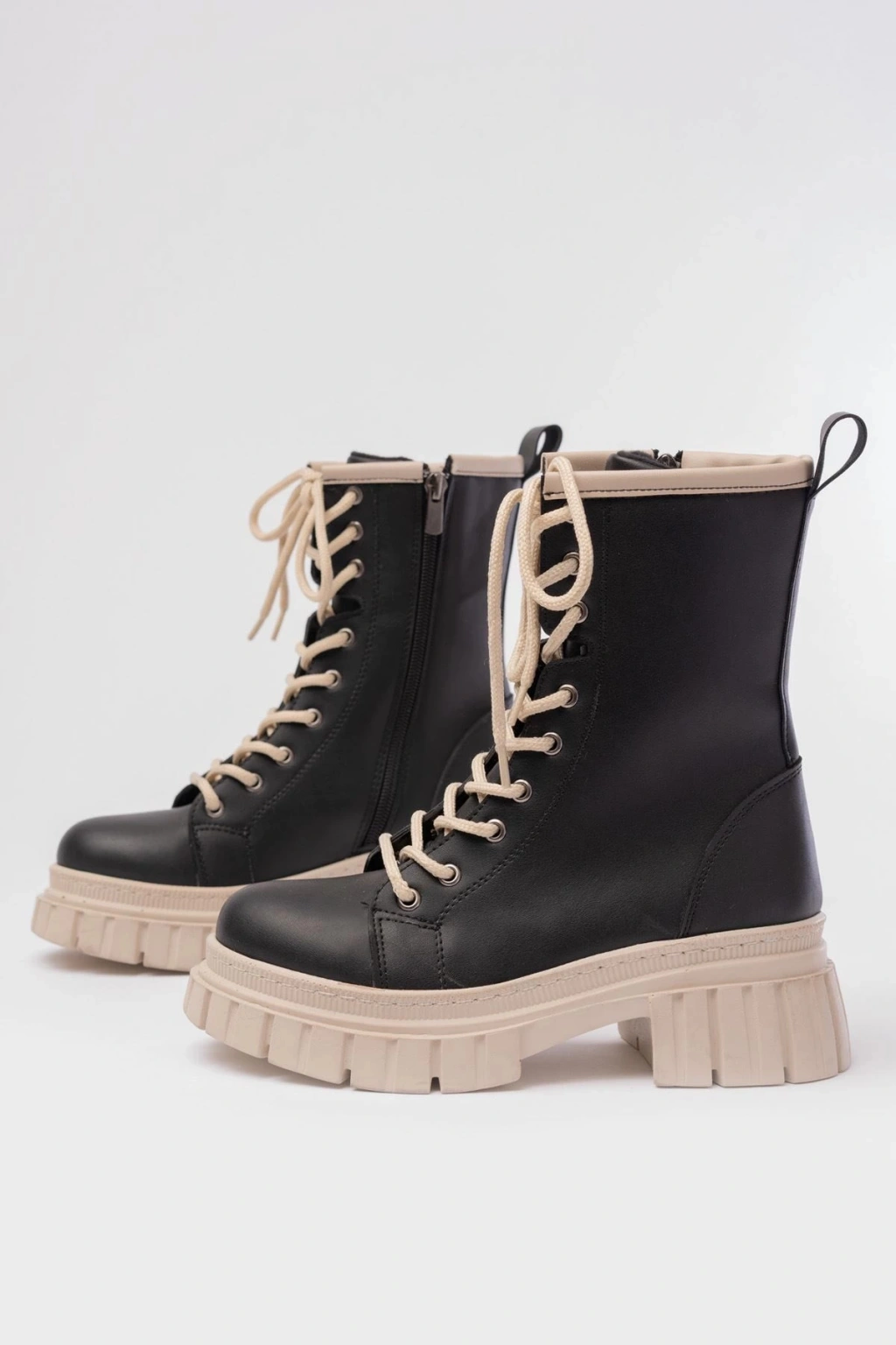 842-2961 Siyah Bağcıklı Kalın Tabanlı Fermuarlı Günlük Kadın Bot
