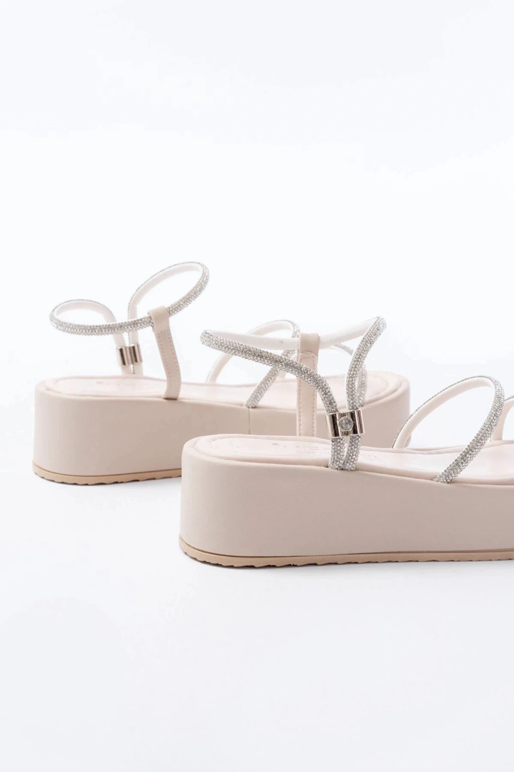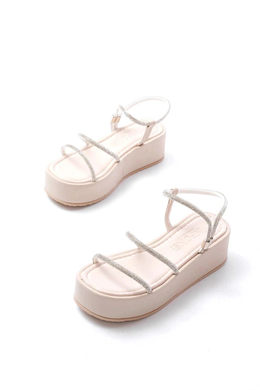 861-1100 Bej Taşlı Dolgu Kadın Sandalet