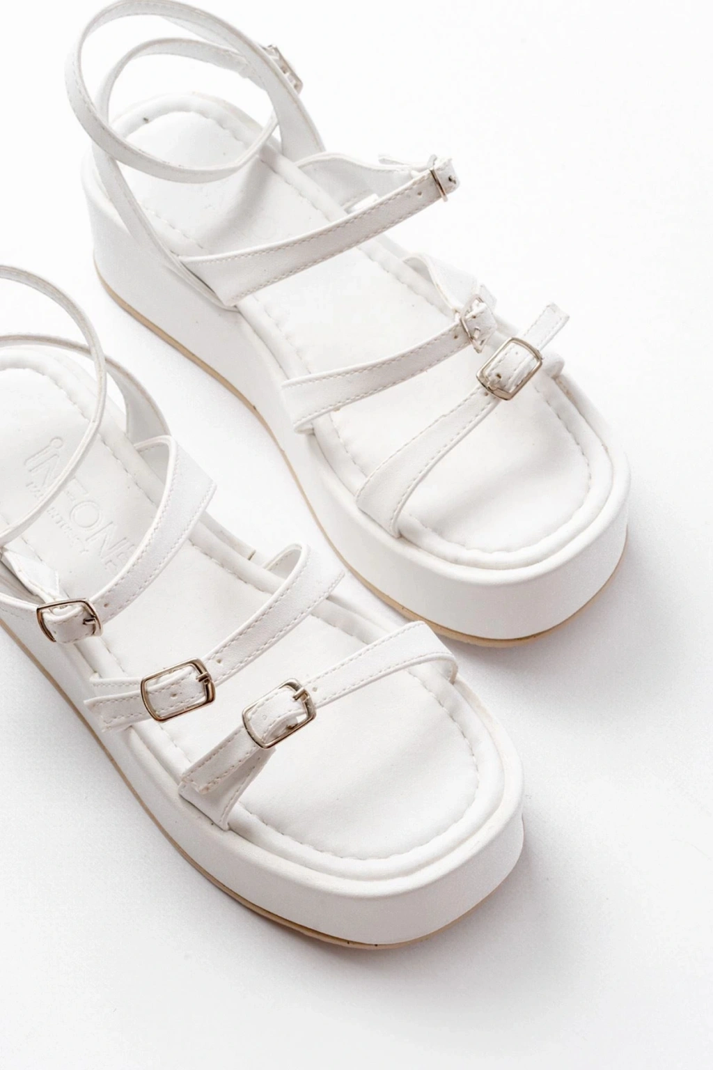 861-1016 Beyaz Dolgu Kadın Sandalet