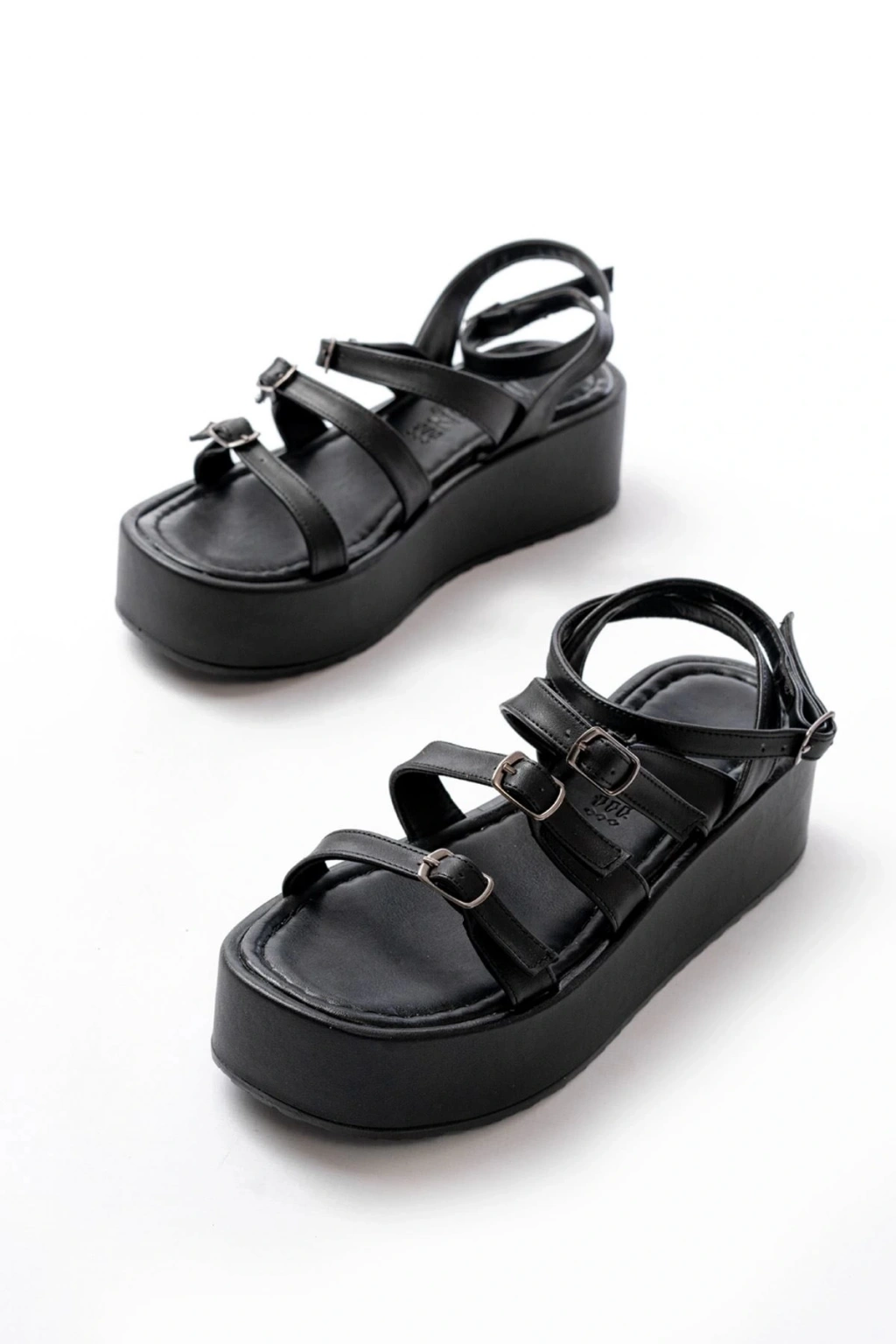 861-1222 Siyah Tokalı Bilekten Bağlamalı Dolgu Kadın Sandalet