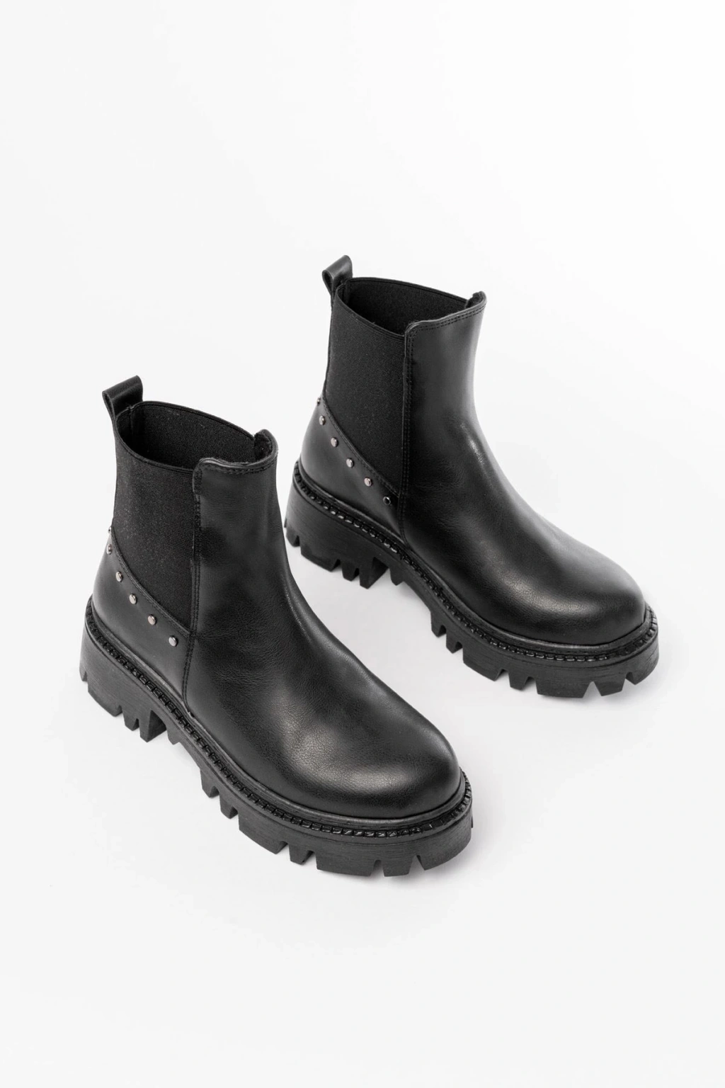 5109-3056 Siyah Lastikli Kalın Topuklu Günlük Kadın Bot