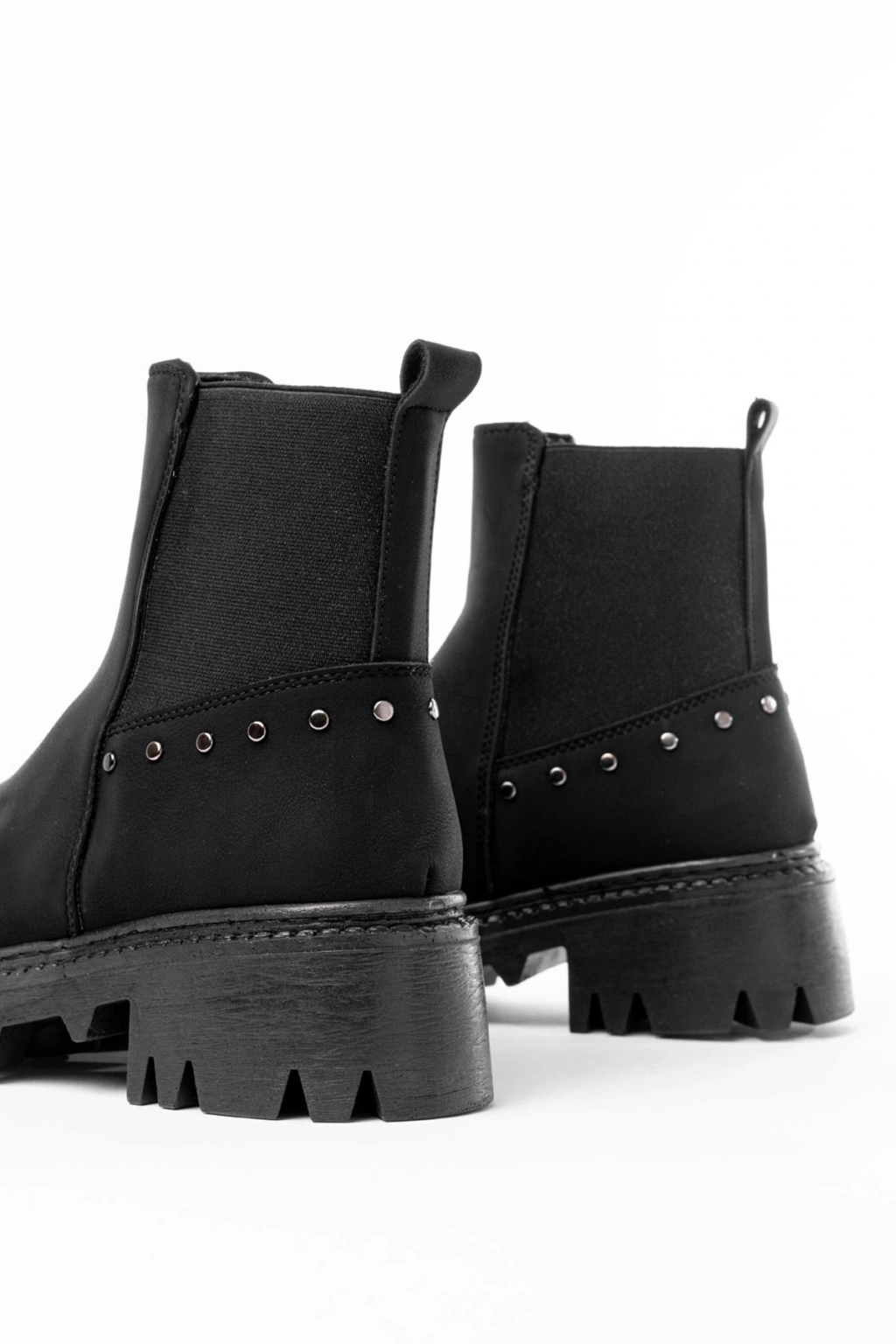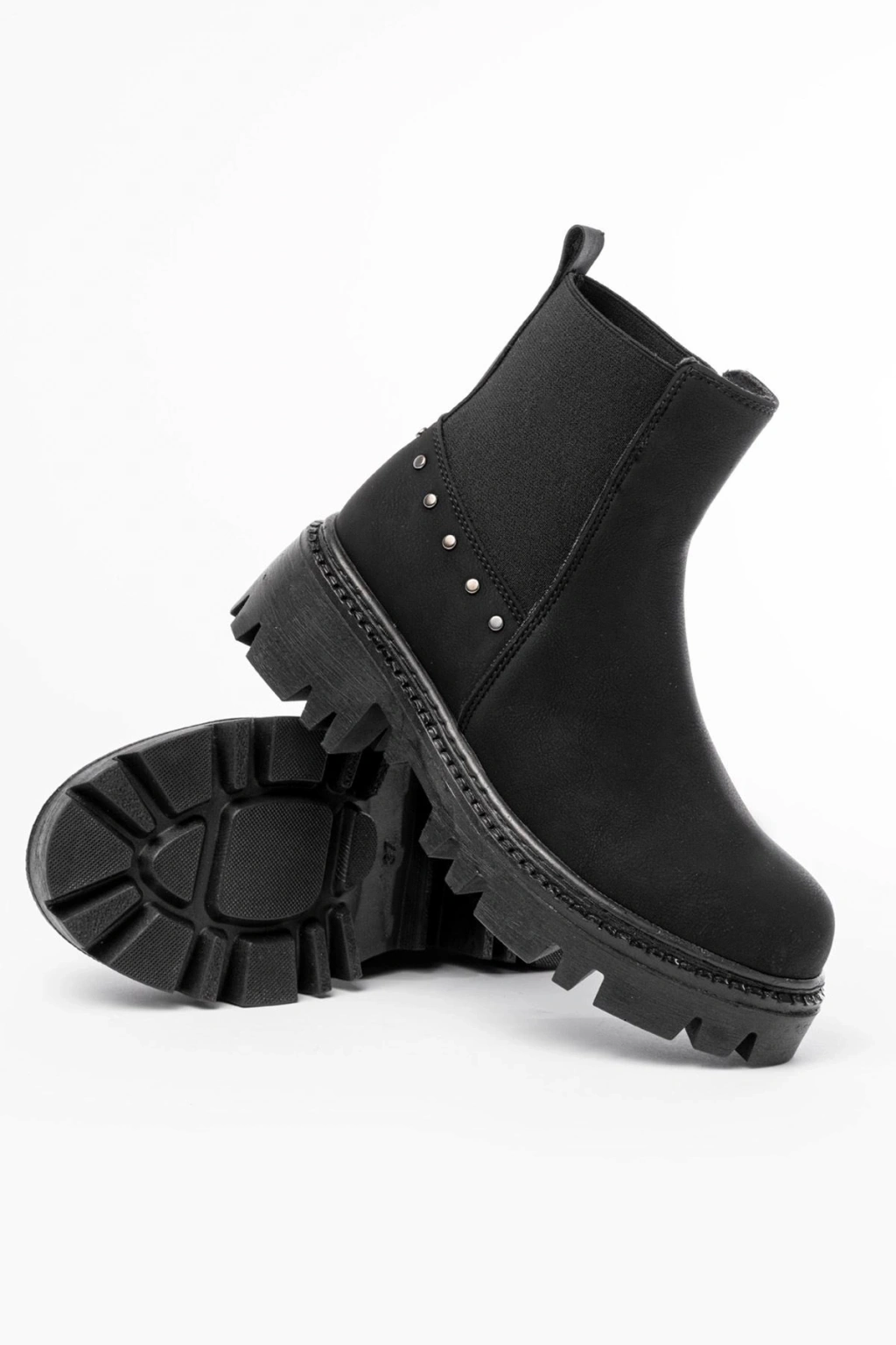 5109-3056 Siyah Lastikli Kalın Topuklu Günlük Kadın Bot
