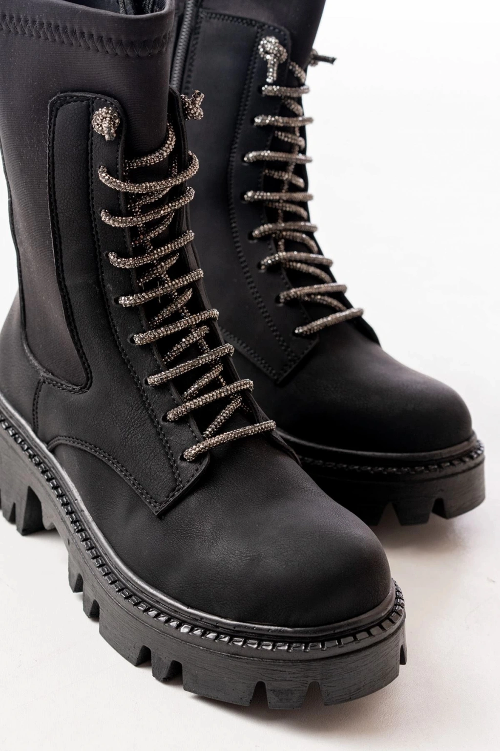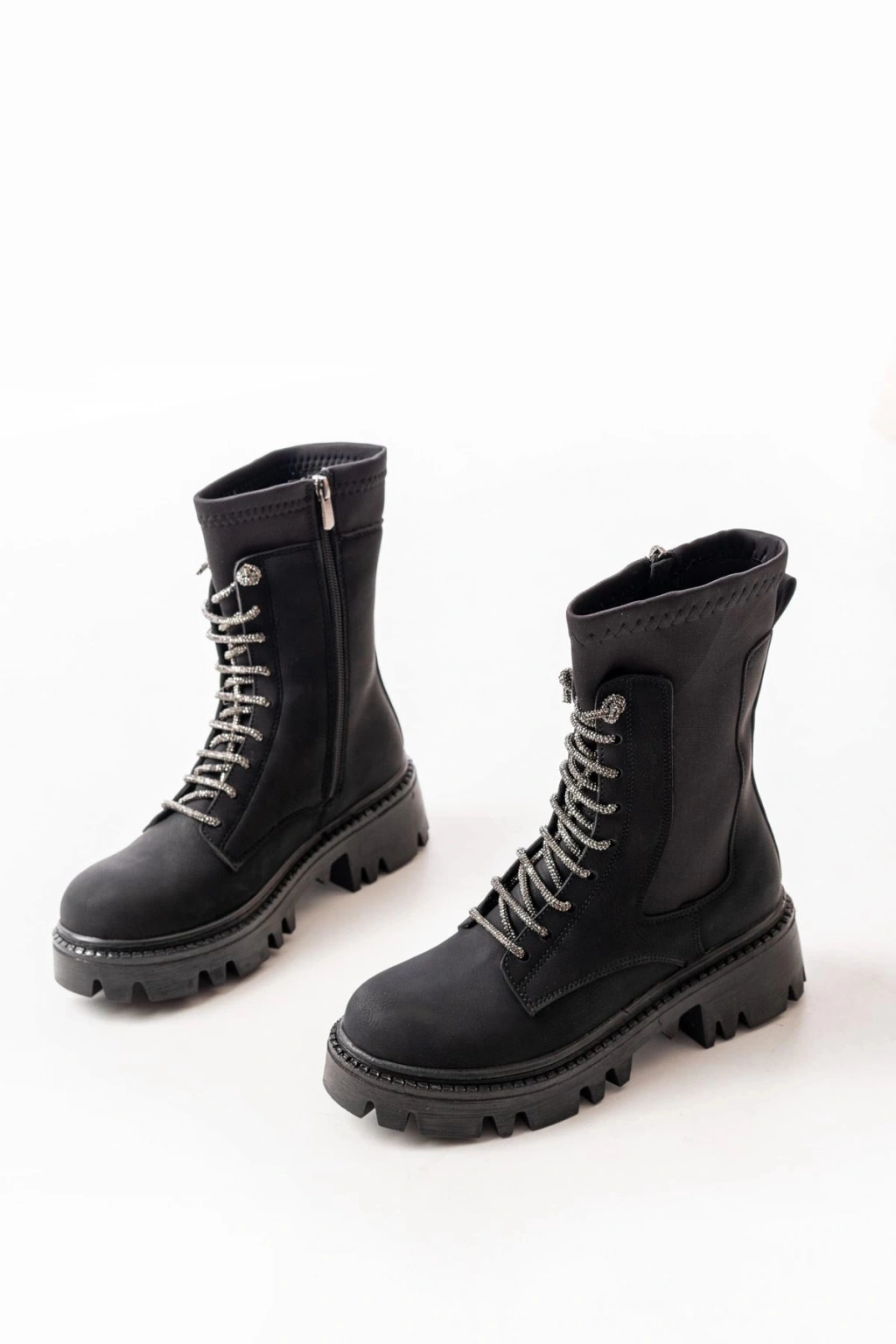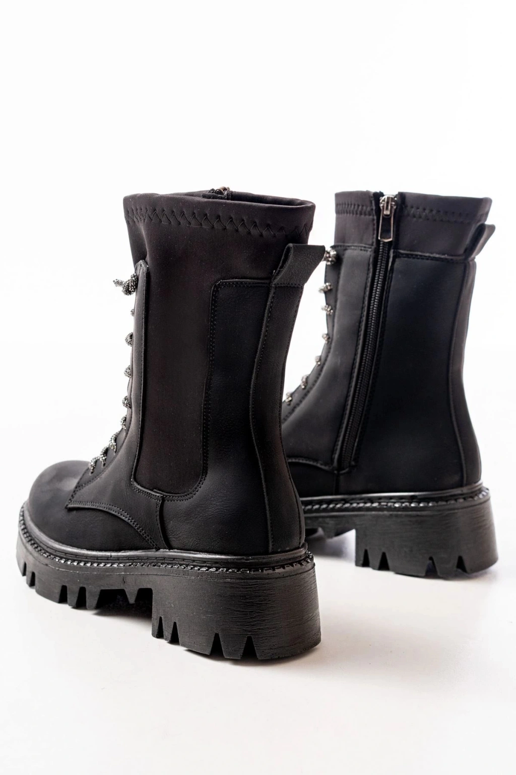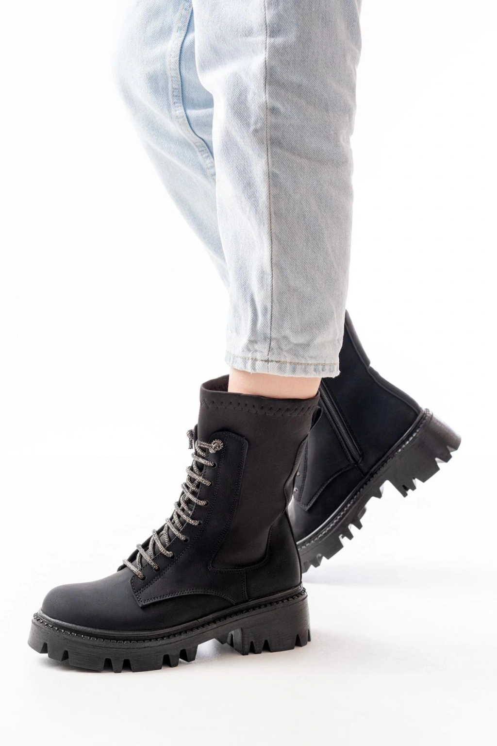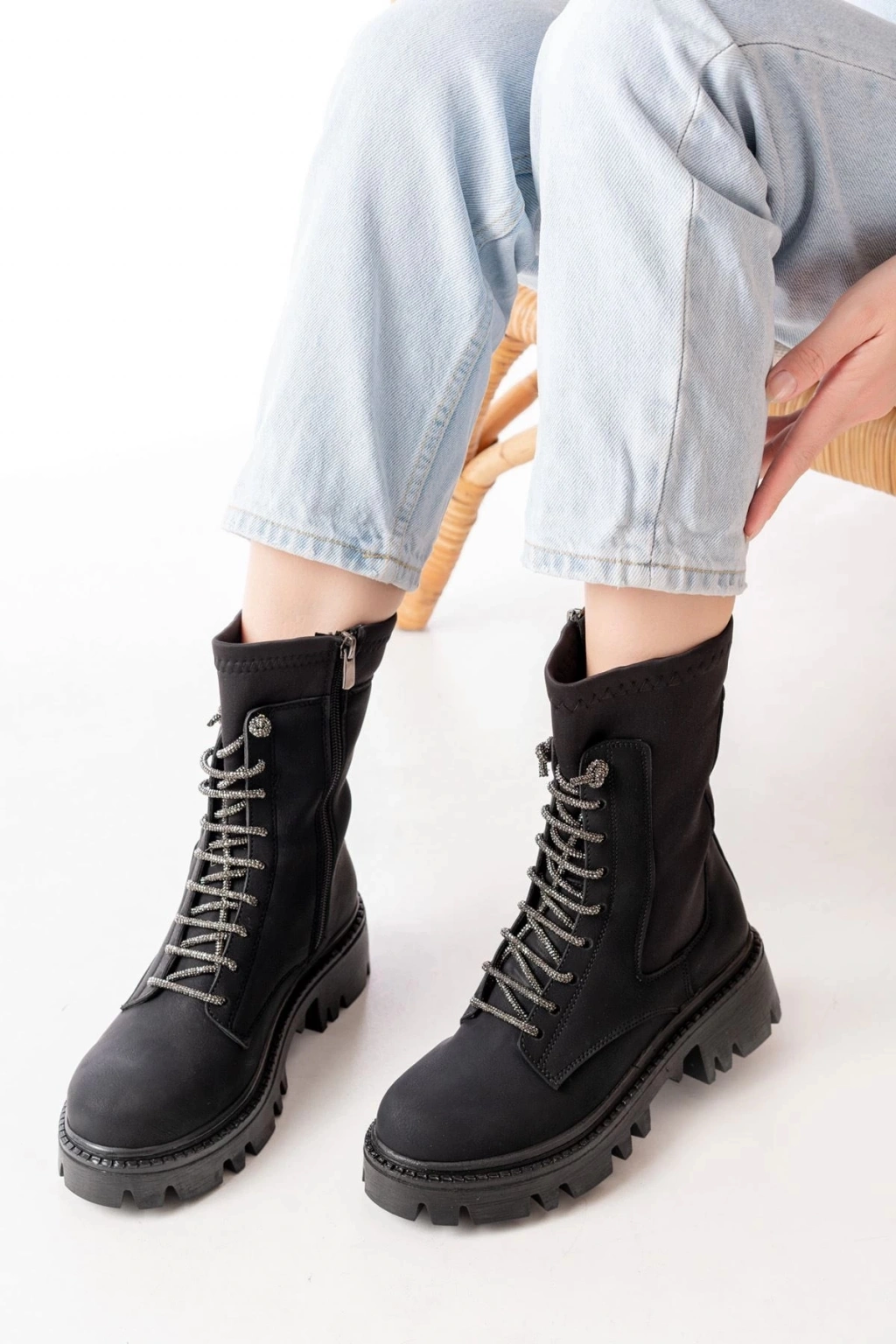 842-2961 Siyah Bağcıklı Kalın Tabanlı Fermuarlı Günlük Kadın Bot