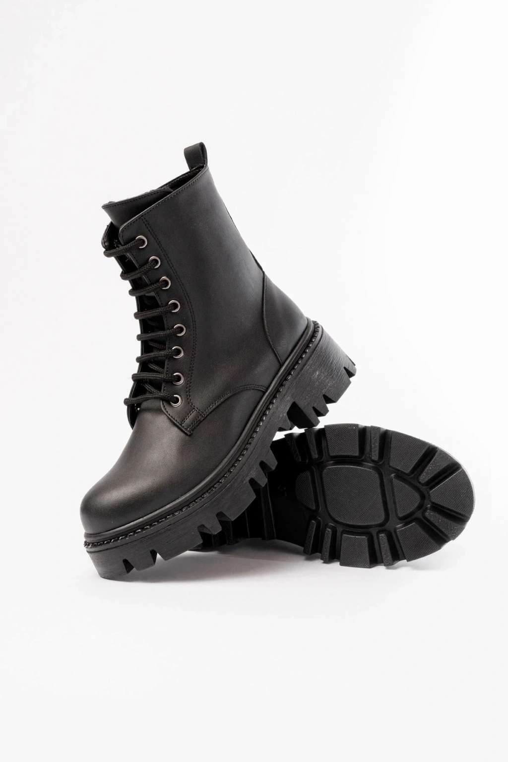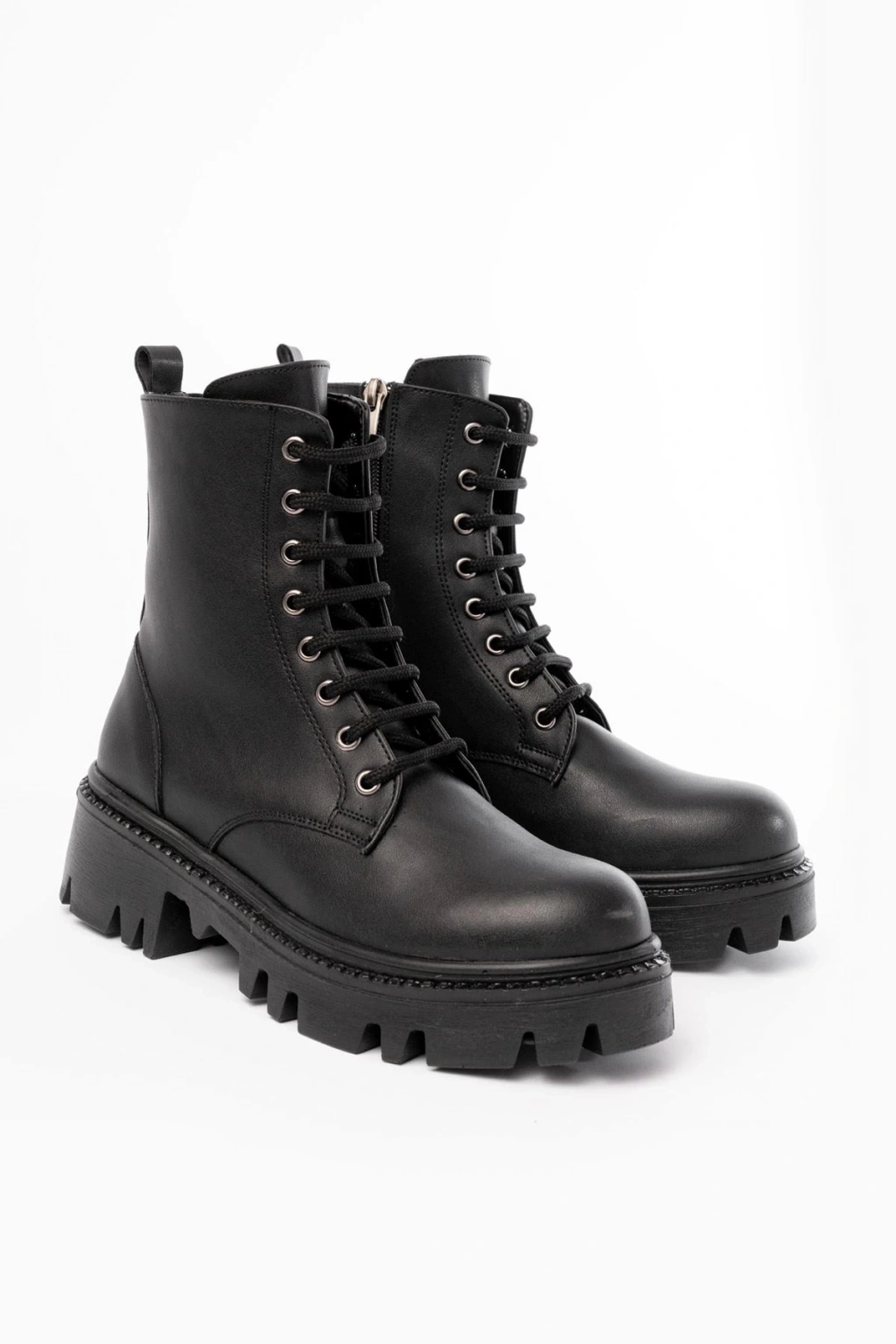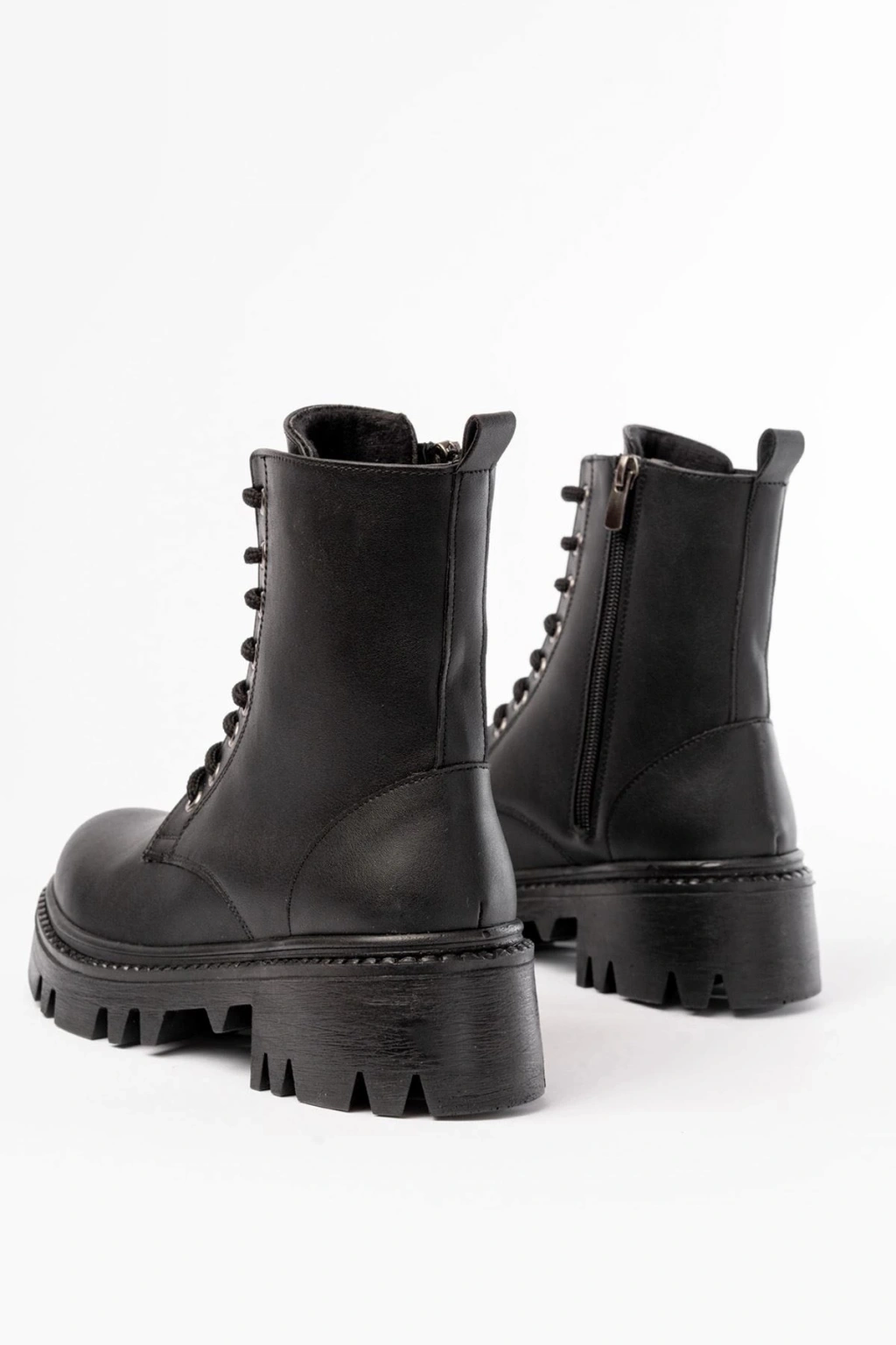 842-2961 Siyah Bağcıklı Kalın Tabanlı Fermuarlı Günlük Kadın Bot