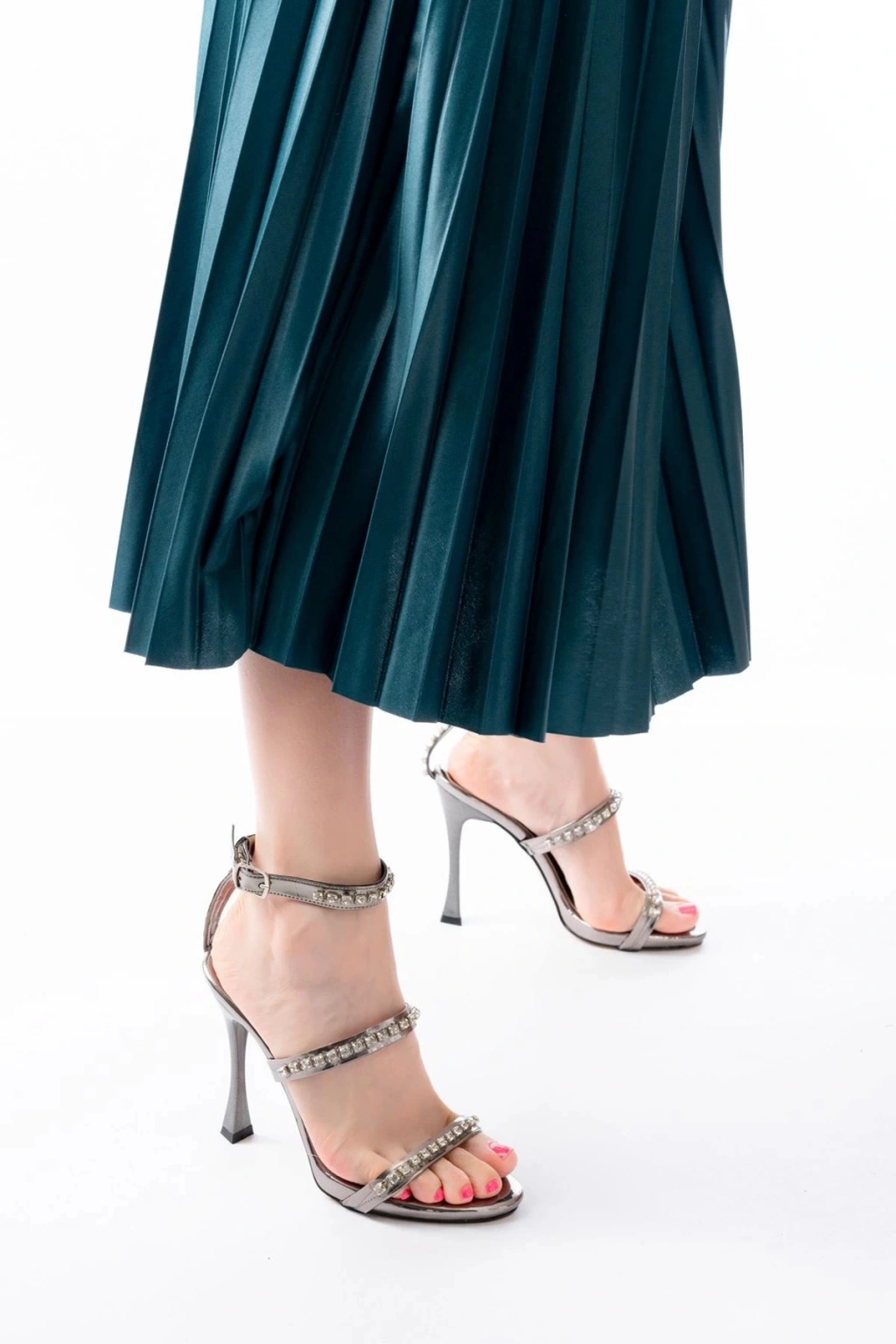 A-40 Platin Taşlı Platformlu Topuklu Kadın Ayakkabı