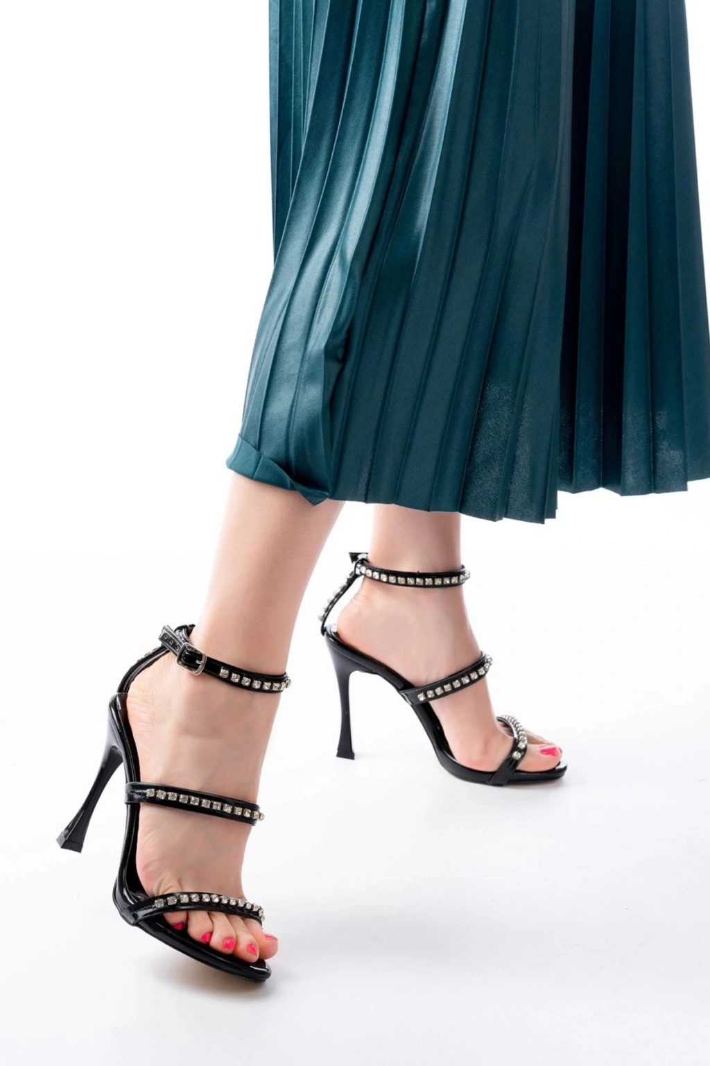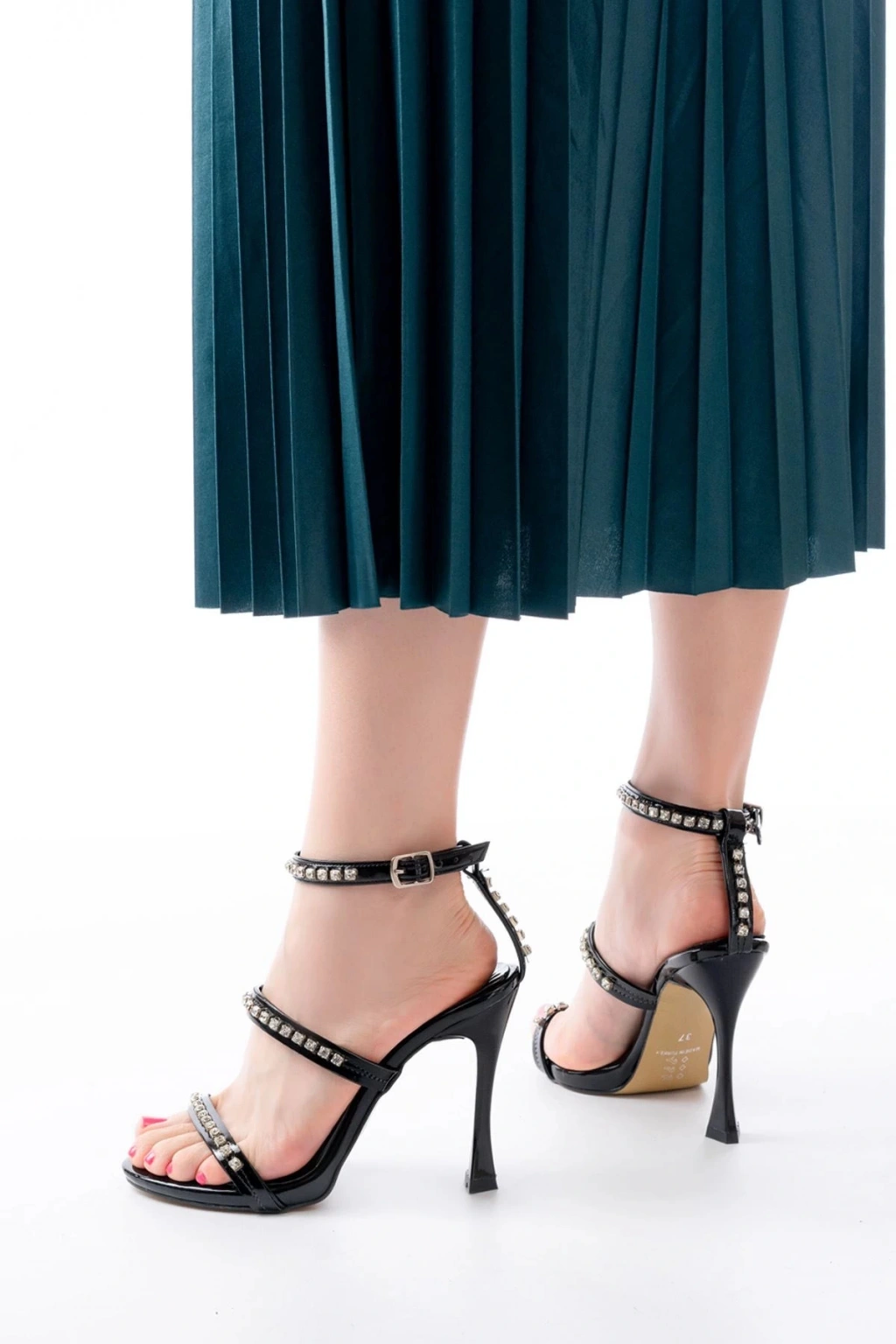 A-40 Siyah Taşlı Platformlu Topuklu Kadın Ayakkabı