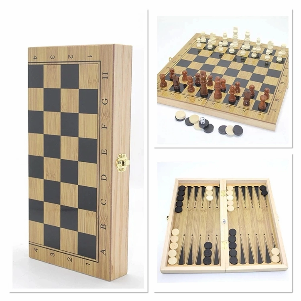 Mıknatıs Taşlı Ahşap Katlanabilir Kutulu Satranç Oyunu 35 Cm G224
