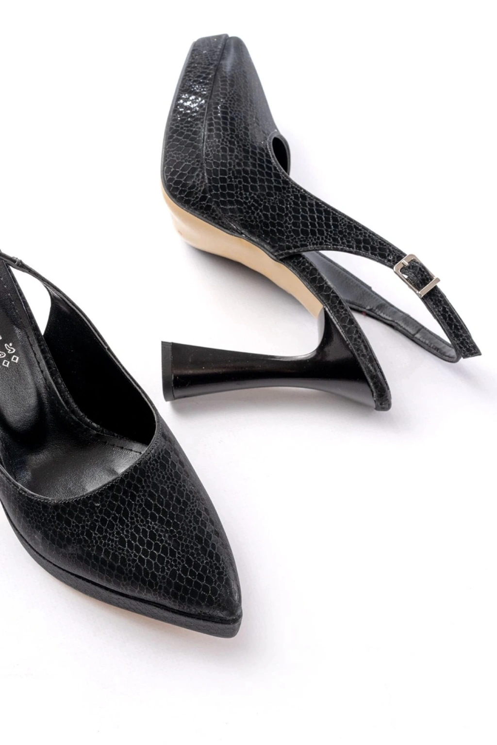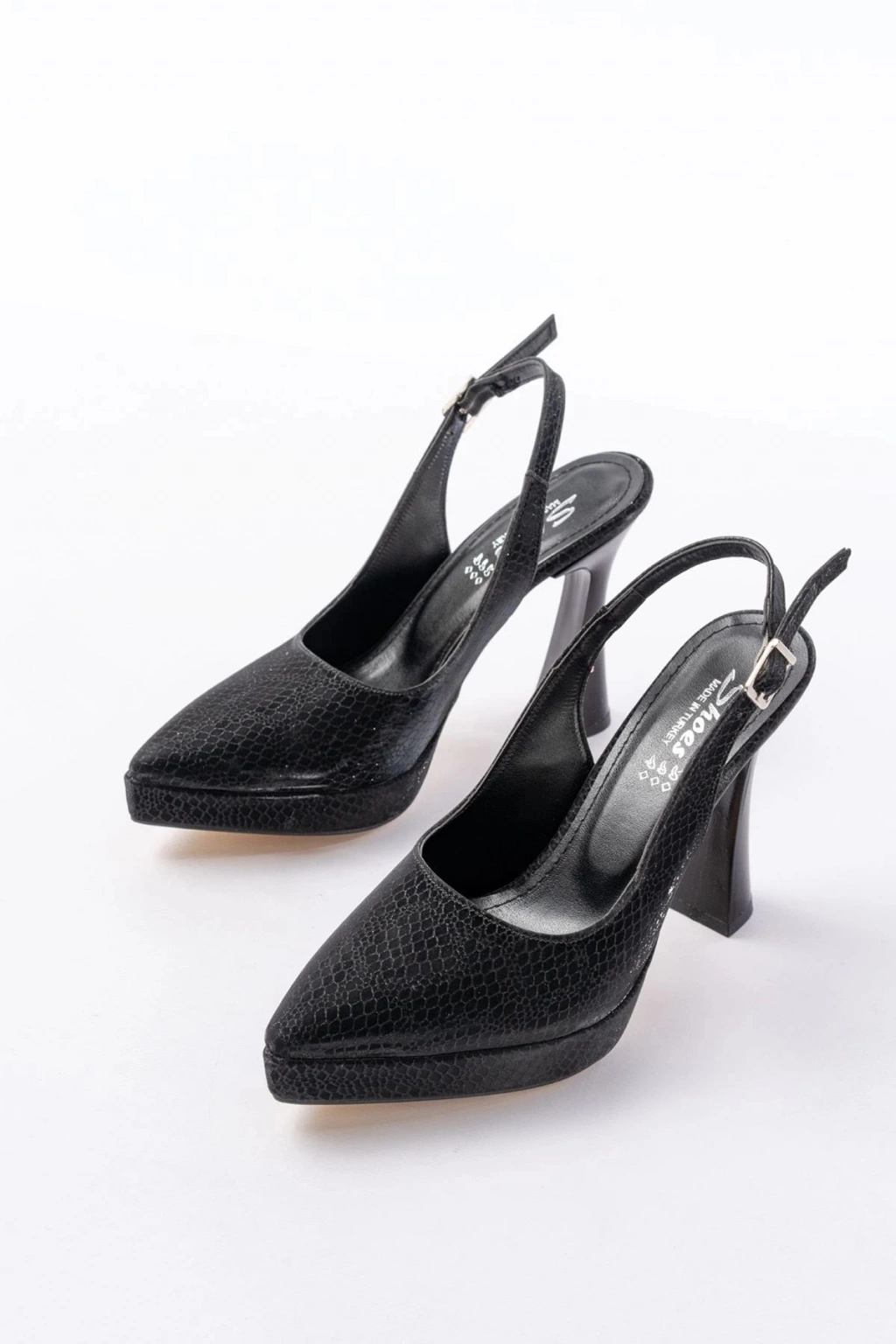 B-2101 Siyah Günlük Arkası Açık Yılan Desenli Topuklu Bayan Ayakkabı