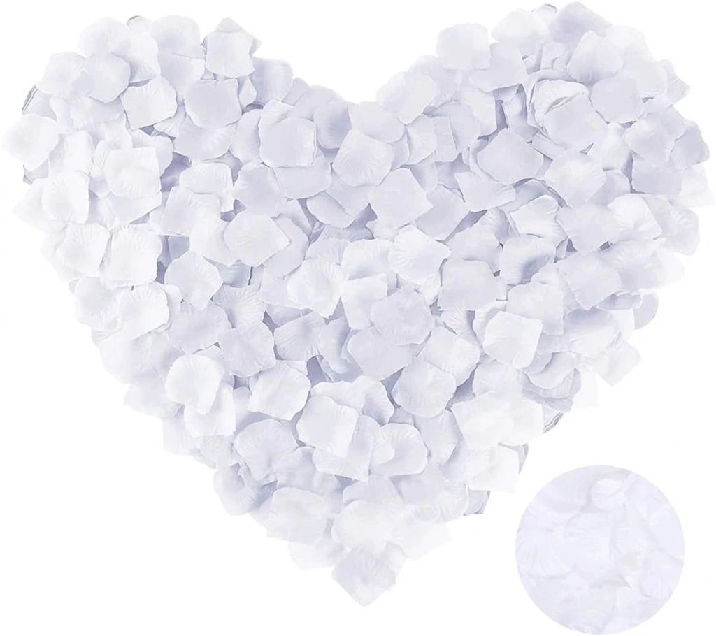Beyaz Gül Yaprağı Şekilli Konfeti ile etkinliklerinizi unutulmaz kılın, fotoğraflarınıza romantik ve zarif bir hava katın.