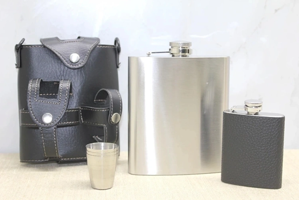 Paslanmaz Çelik Tekli 7 Oz Derili Matara Alk2660