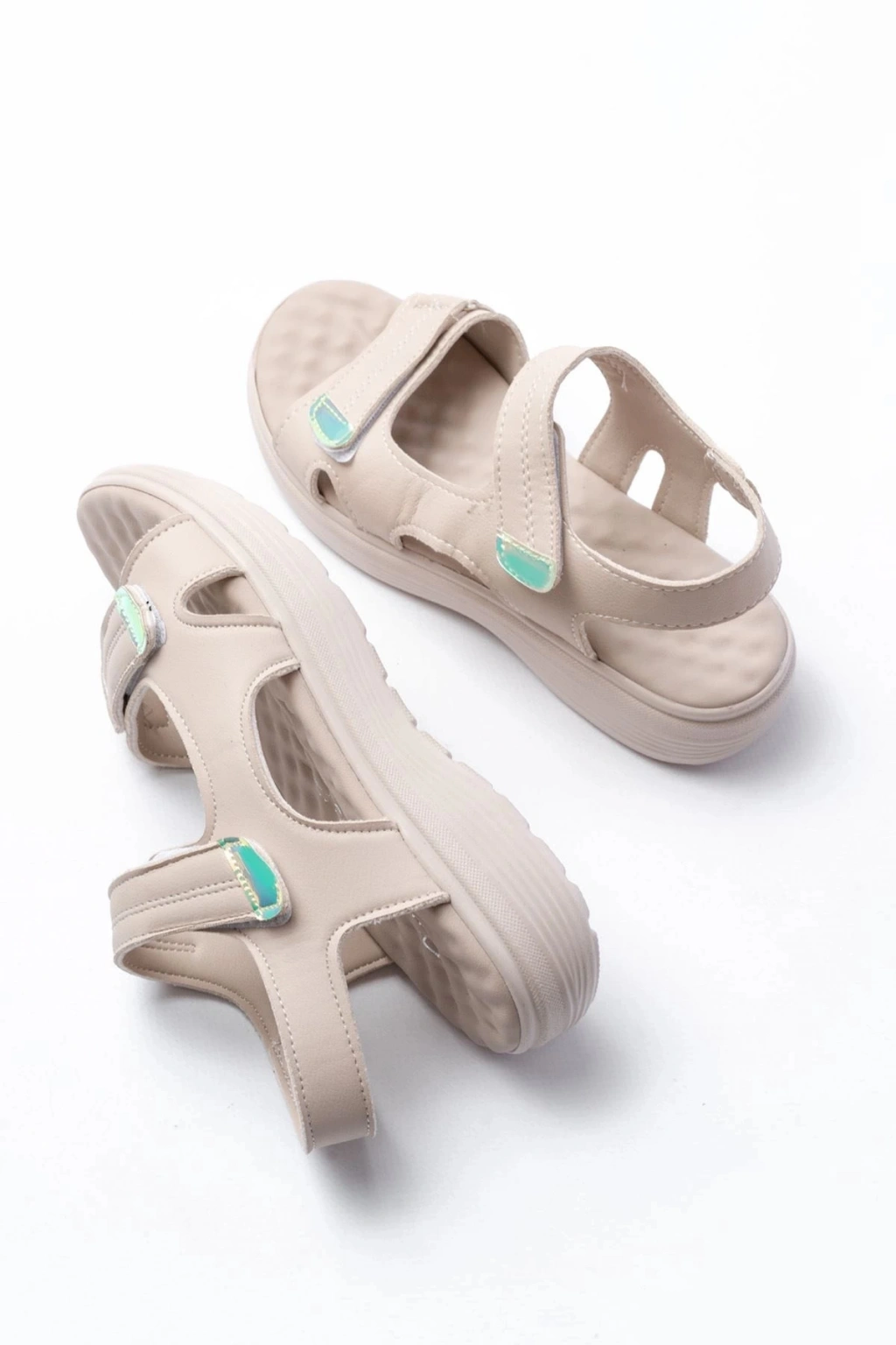 DM-363 Bej Baret Cırtlı Dikişli Günlük Kadın Sandalet
