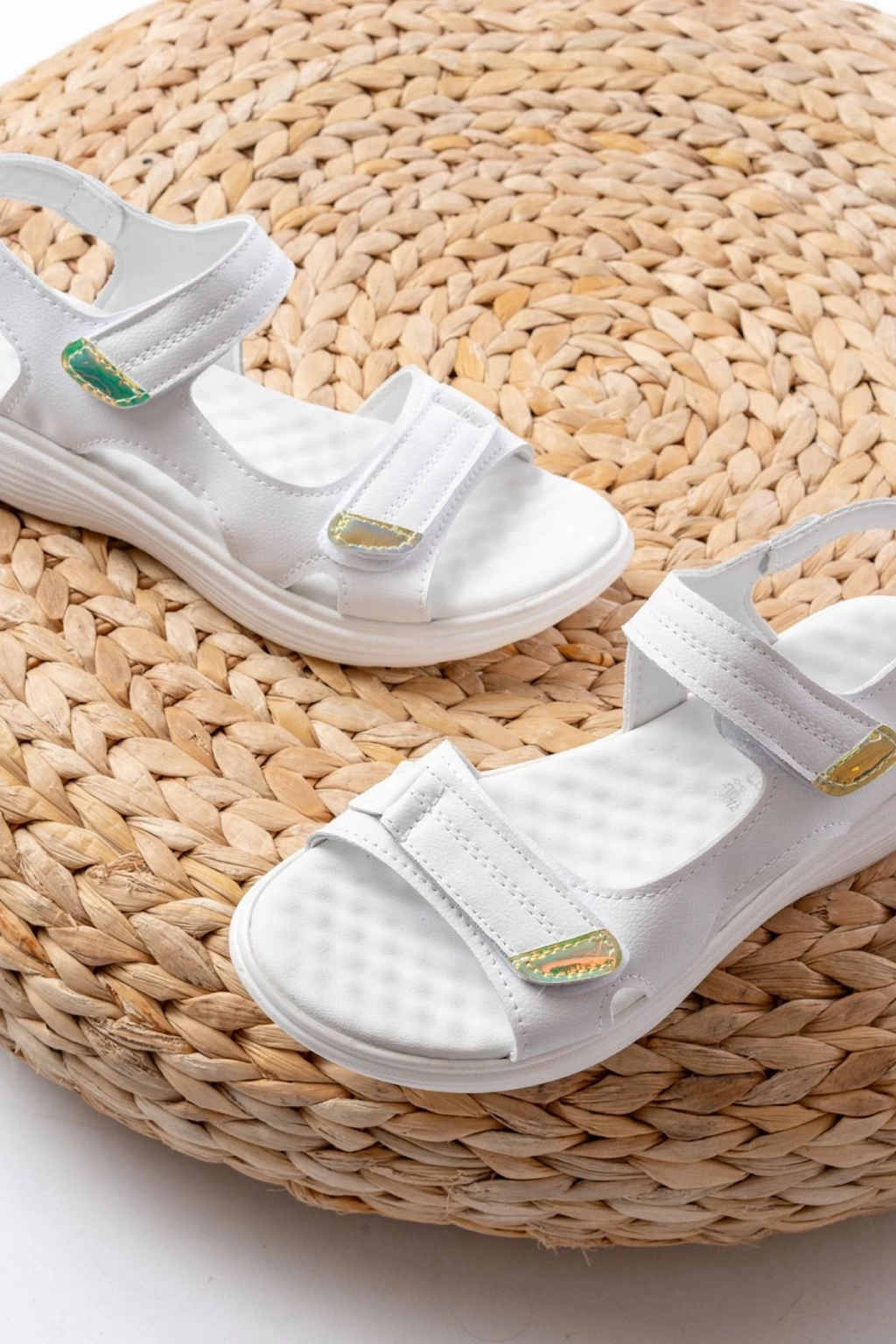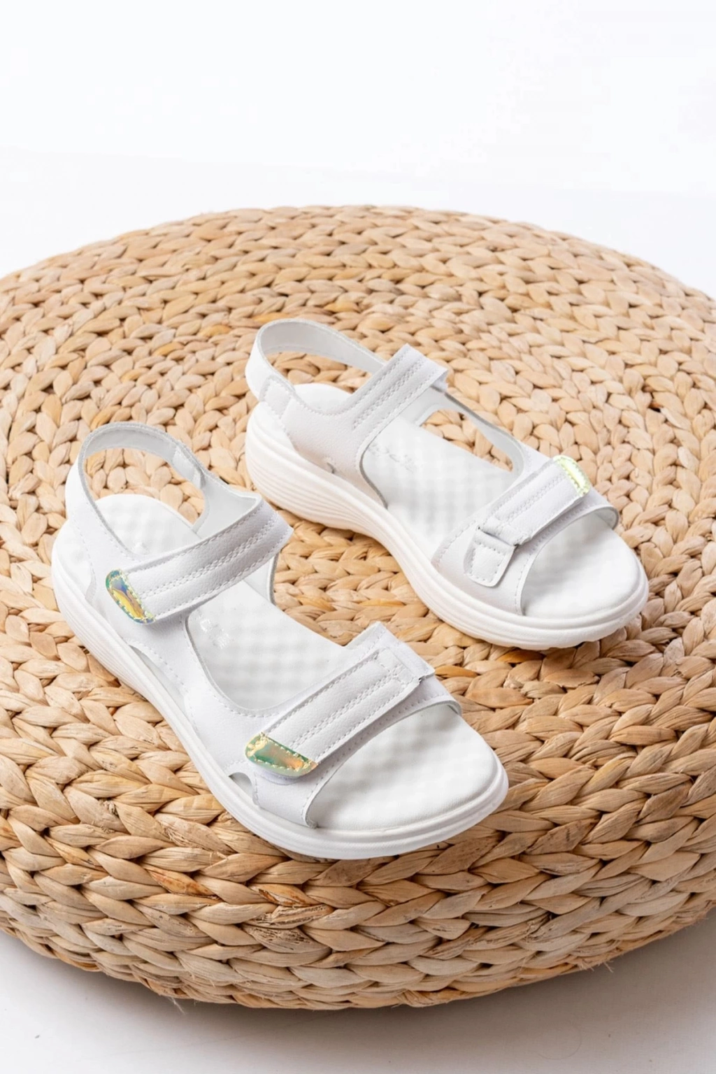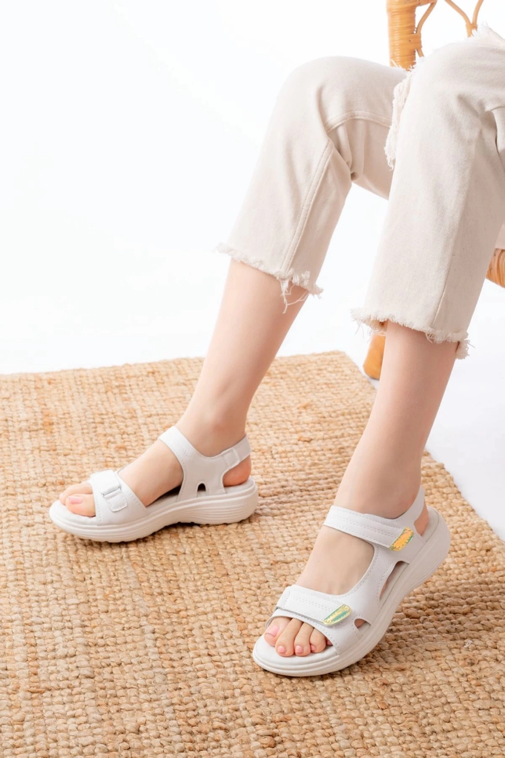 DM-363 Beyaz Baret Cırtlı Dikişli Günlük Kadın Sandalet