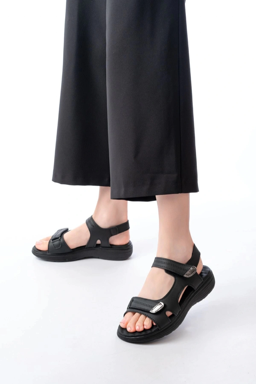 DM-363 Siyah Baret Cırtlı Dikişli Günlük Kadın Sandalet