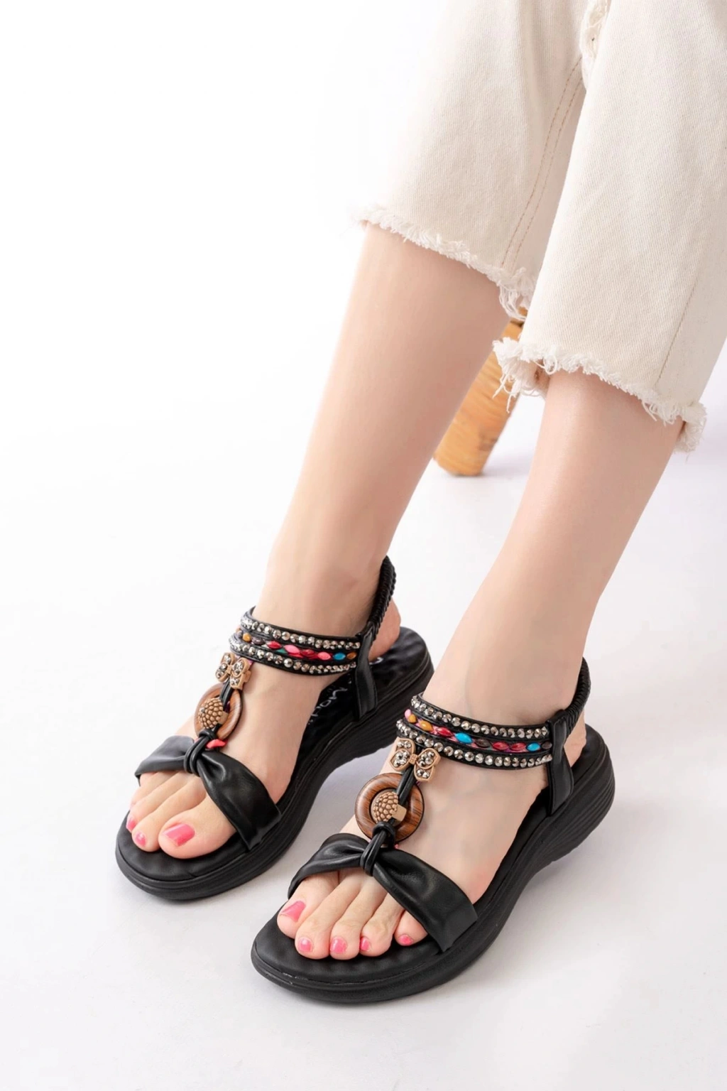 DM-608 Siyah Taşlı Arka Lastikli Günlük Kadın Sandalet