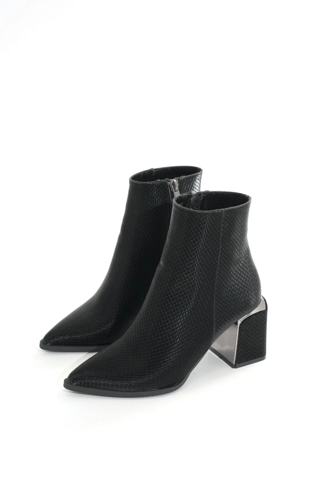767-3020 Siyah Fermuarlı Kalın Topuklu Günlük Kadın Bot
