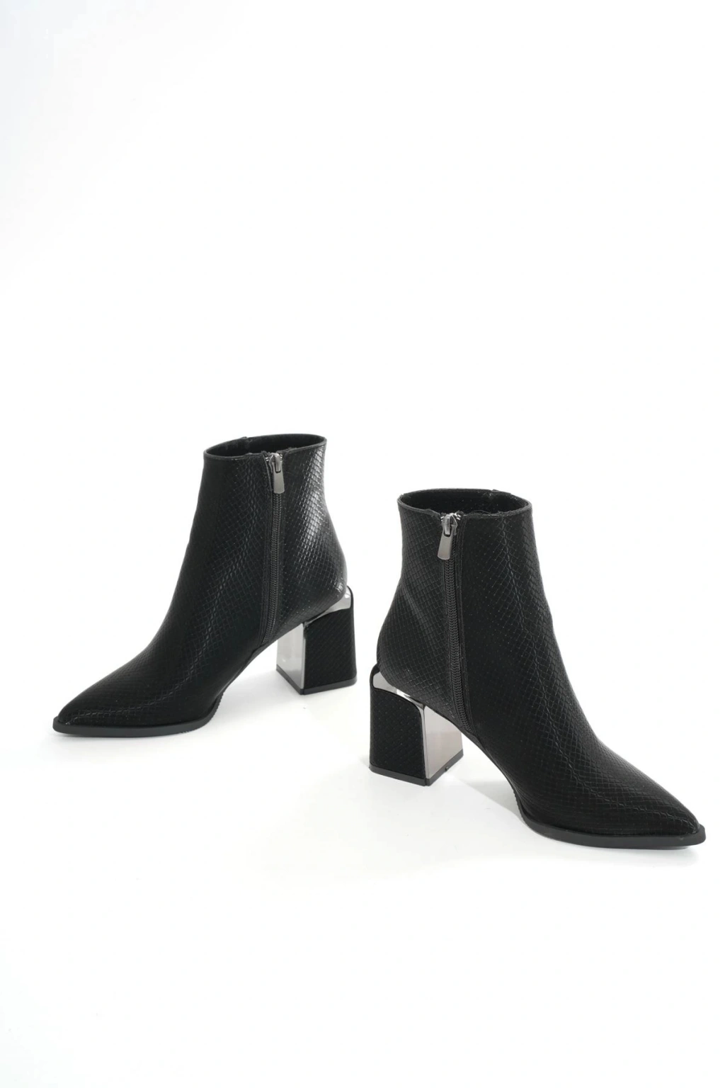 DNZ-409 Siyah Fermuarlı Topuklu Kadın Günlük Bot