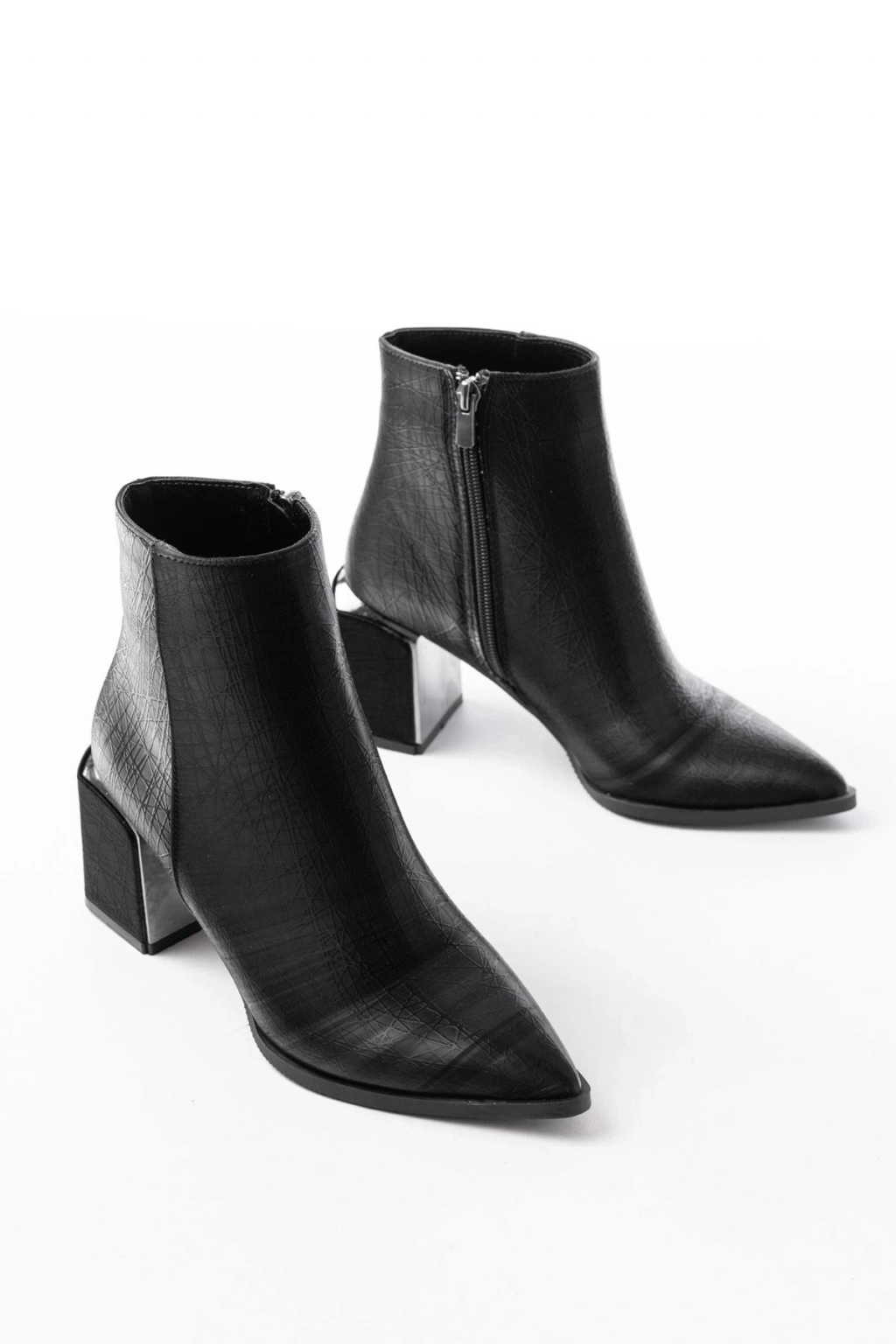 767-3020 Siyah Fermuarlı Kalın Topuklu Günlük Kadın Bot