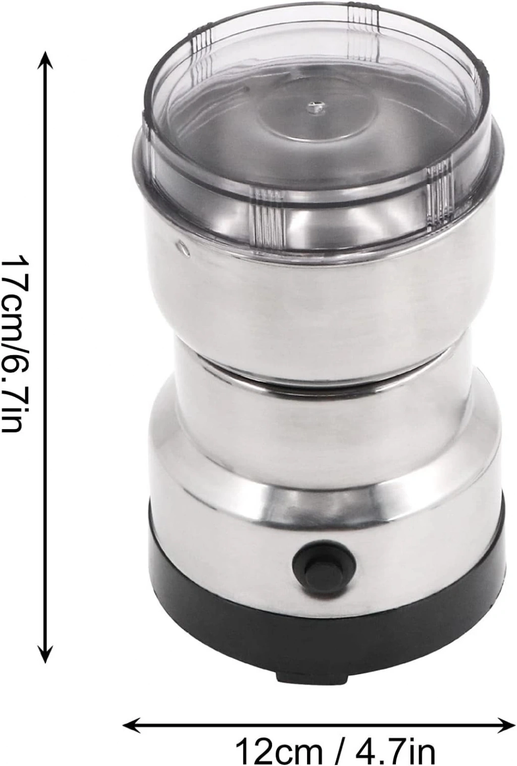 Elektrikli kahve öğütücümüz tek elle kolayca tutulabilir ve kompakt tasarımı tezgahta minimum yer kaplar, ayrıca bir dolap veya çekmecede saklaması kolaydır.