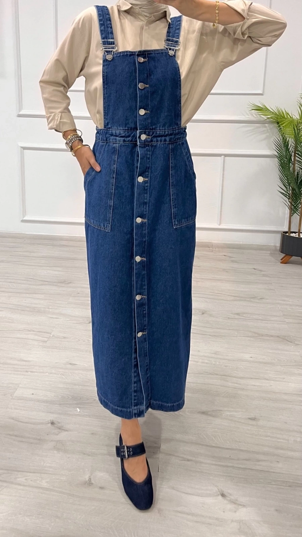 Şıklık ve rahatlığı bir arada sunan Etekli Salopet Enzim Süper Taş Yıkama Koyu Mavi D2521, gardırobunuzun vazgeçilmezi olmaya aday! İster günlük hayatta ister özel günlerde şıklığınızdan ödün vermeden tercih edebileceğiniz bu ürün, hem modern hem de tarz bir görünüm sunuyor.