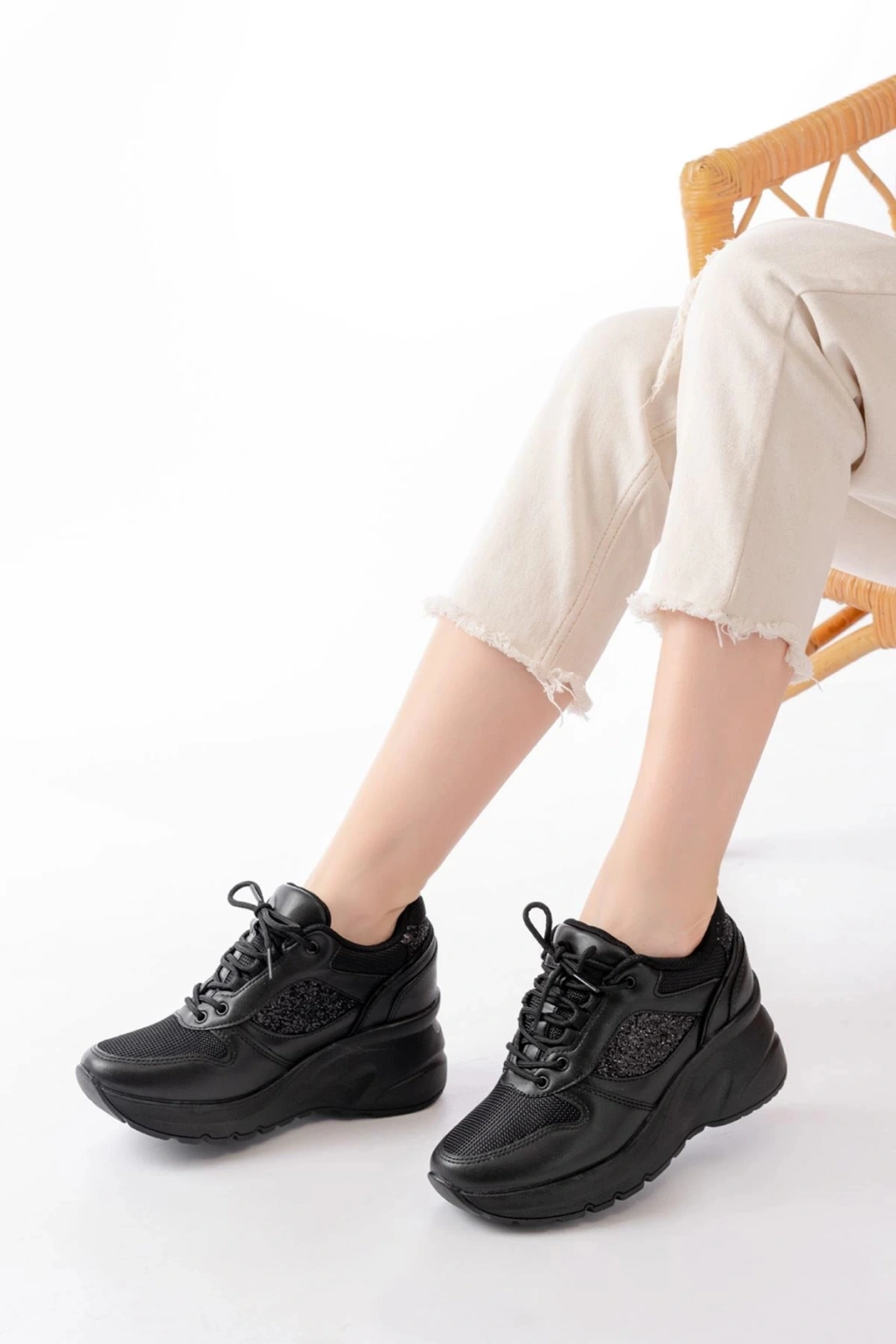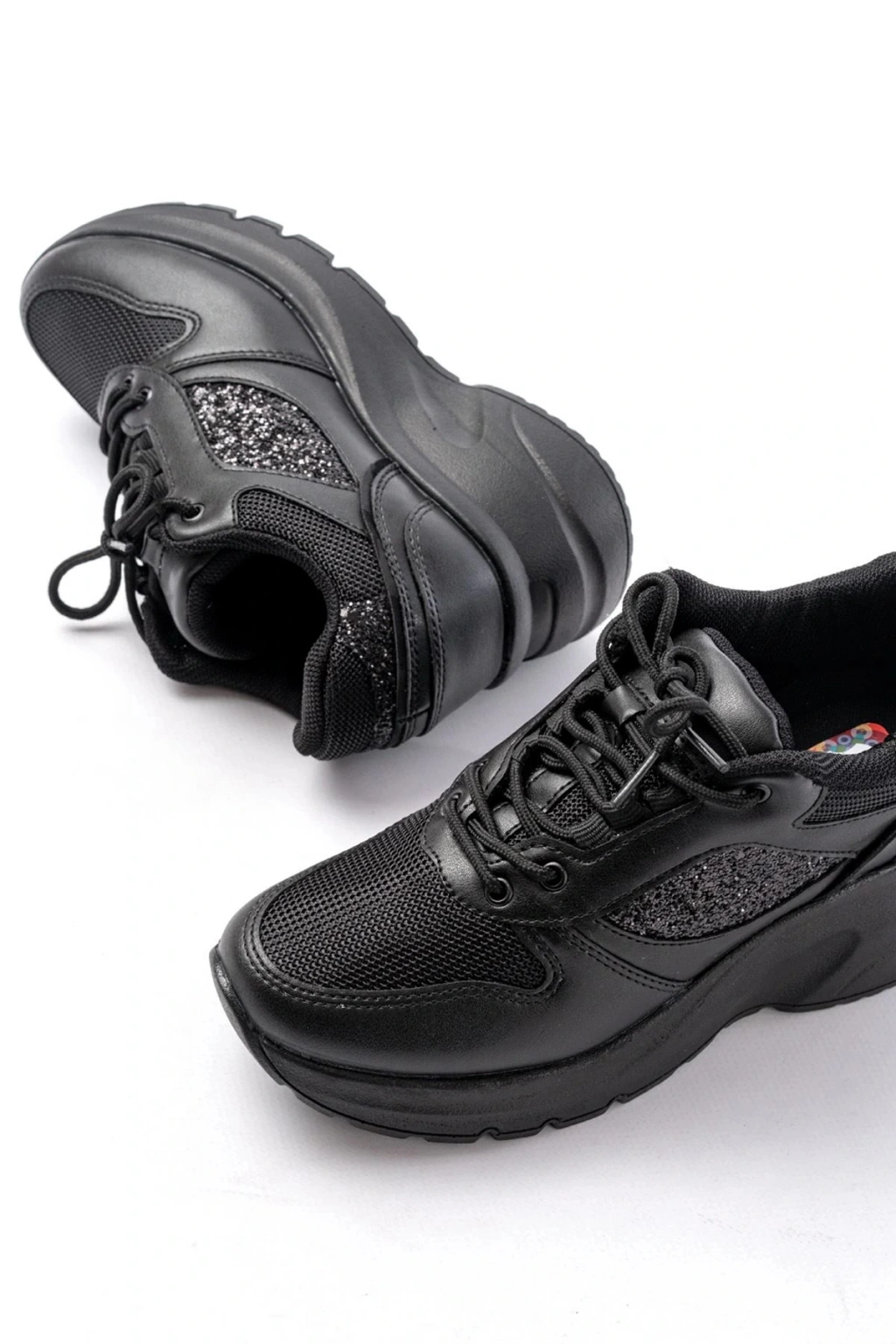 F-185 Siyah Günlük Bağcıklı Taş Aksesuarlı Yazlık Spor Ayakkabı