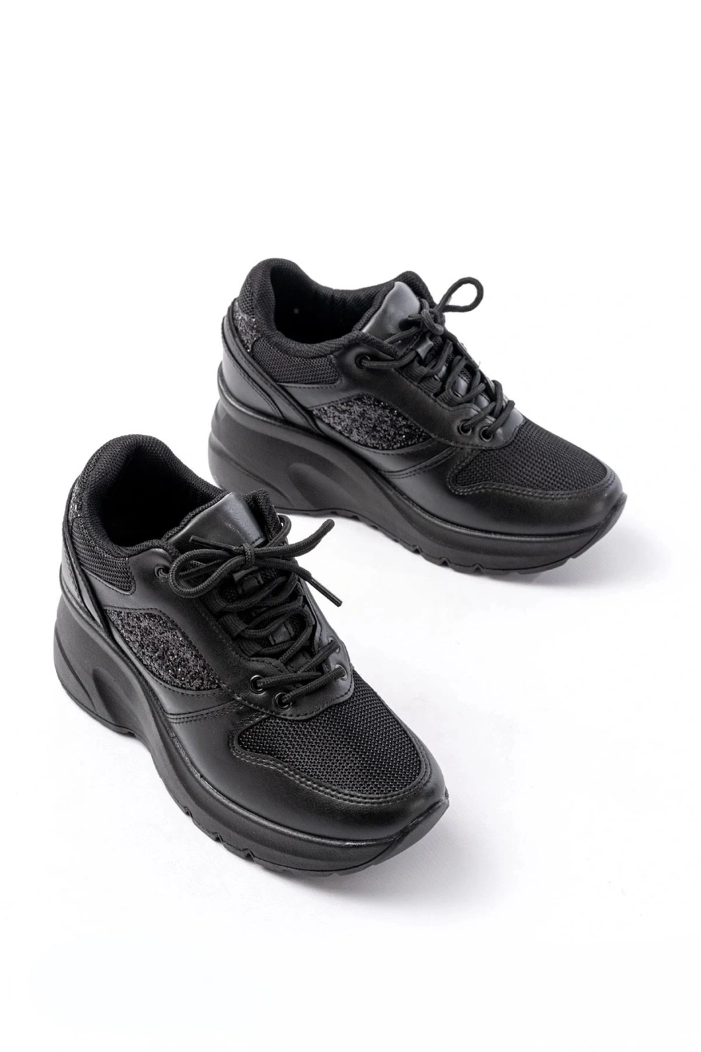 868-754 Siyah Bağcıklı Günlük Yüksek Tabanlı Loafer Ayakkabı