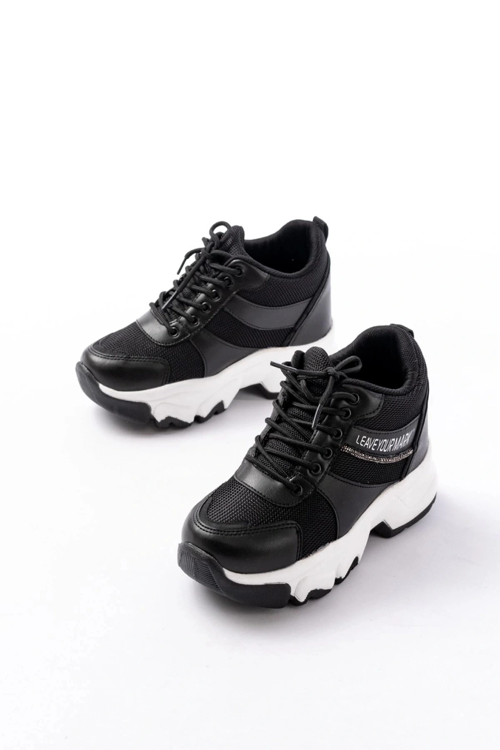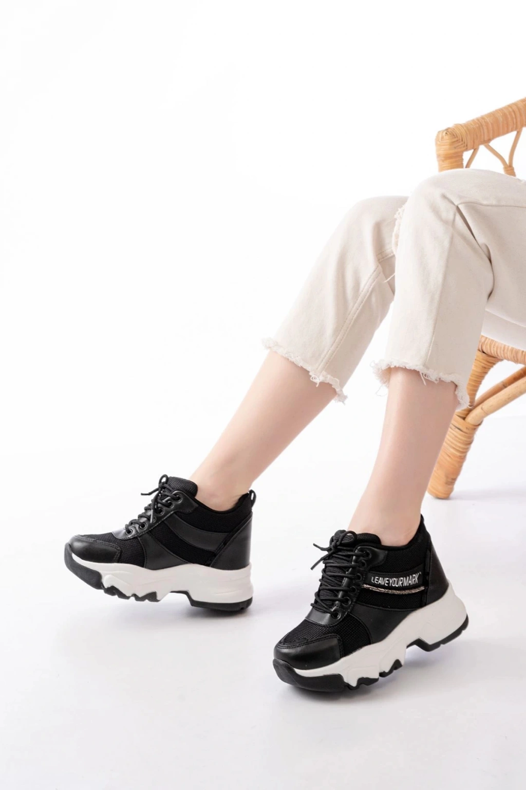 868-754 Siyah Bağcıklı Günlük Yüksek Tabanlı Loafer Ayakkabı