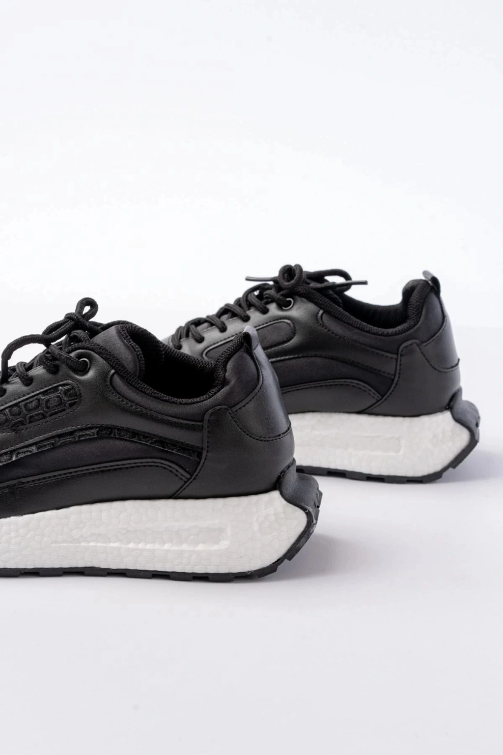 868-754 Siyah Kroko Bağcıklı Günlük Yüksek Tabanlı Loafer Ayakkabı