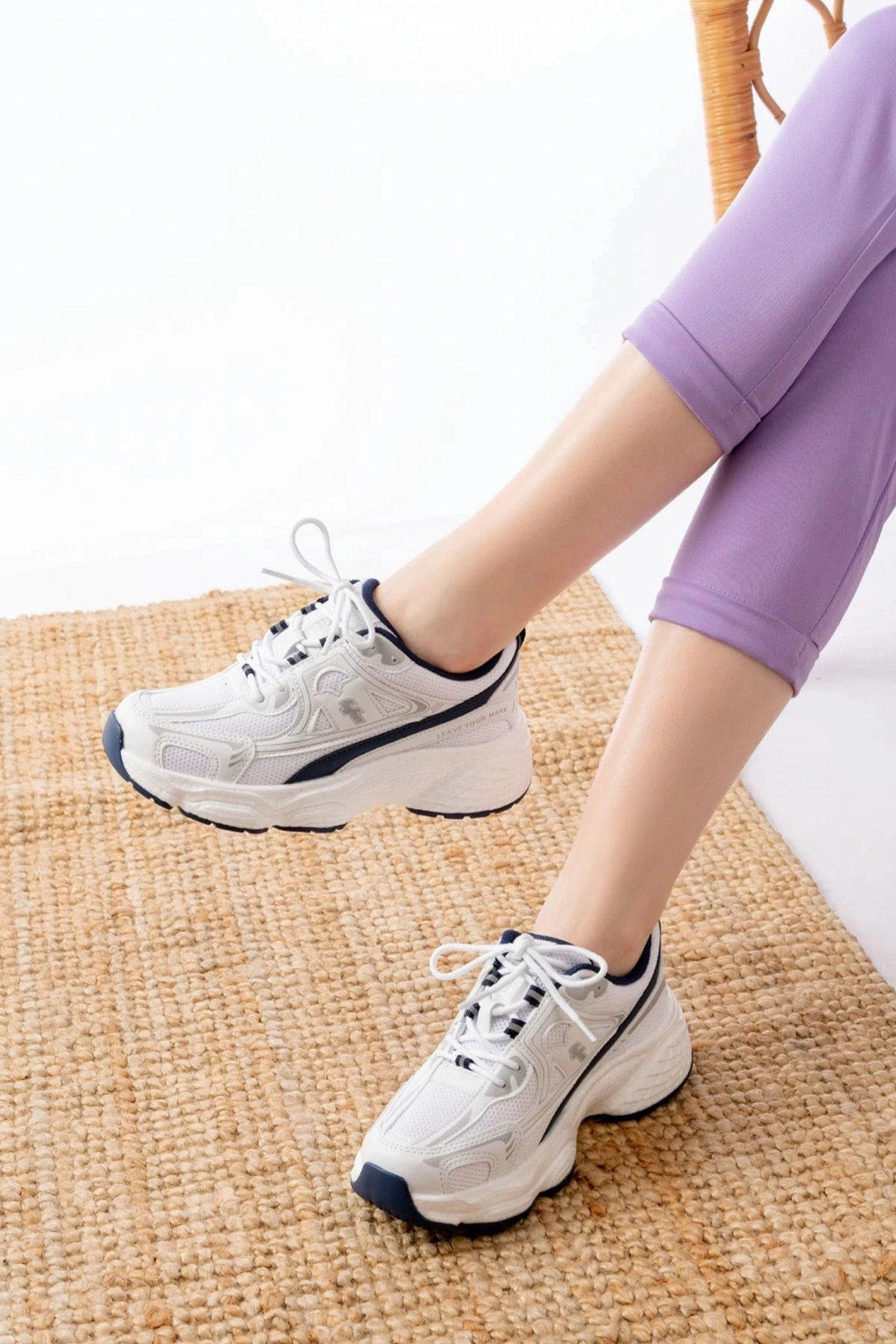 F-329 Beyaz Günlük Bağcıklı Lacivert Desenli Yazlık Spor Ayakkabı