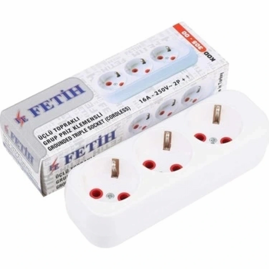 Fetih Üçlü Topraklı Fişli Priz