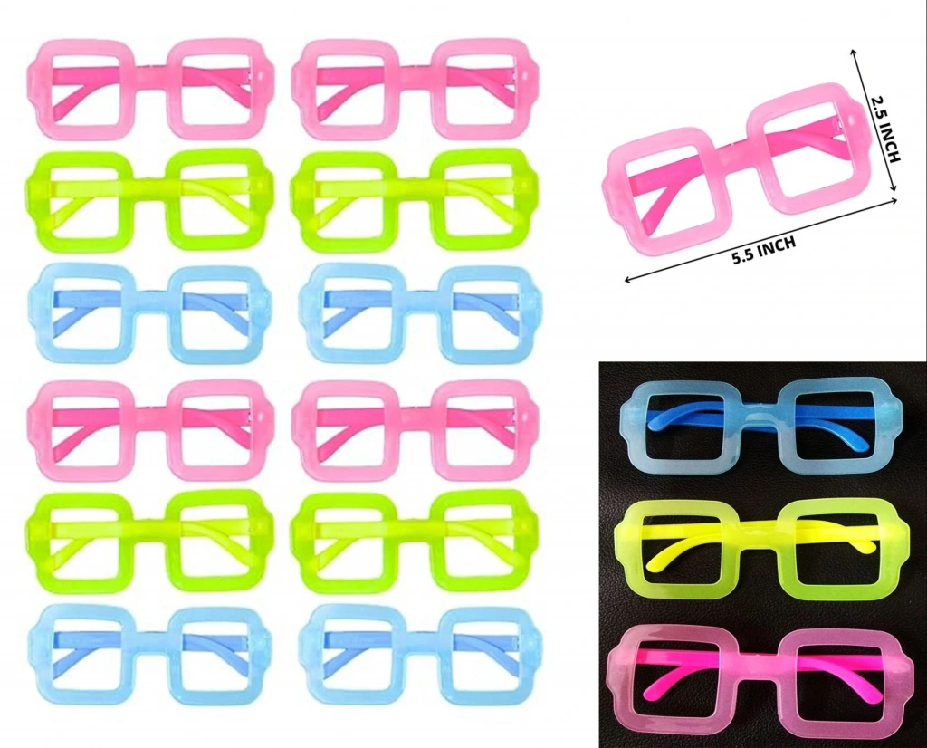 Fosforlu Kare Model Parti Gözlüğü Karanlıkta Yanan Gözlükler 12 Adet, partiler, festivaller veya diğer özel günlerde eğlenceli ve gizemli bir görünüm elde etmek isteyenler için mükemmel bir seçimdir. Kare tasarımı, neon renkleri ve karanlıkta parlayan özelliği ile bu gözlükler sizi partinin en şık ve gizemli konuğu yapacak.