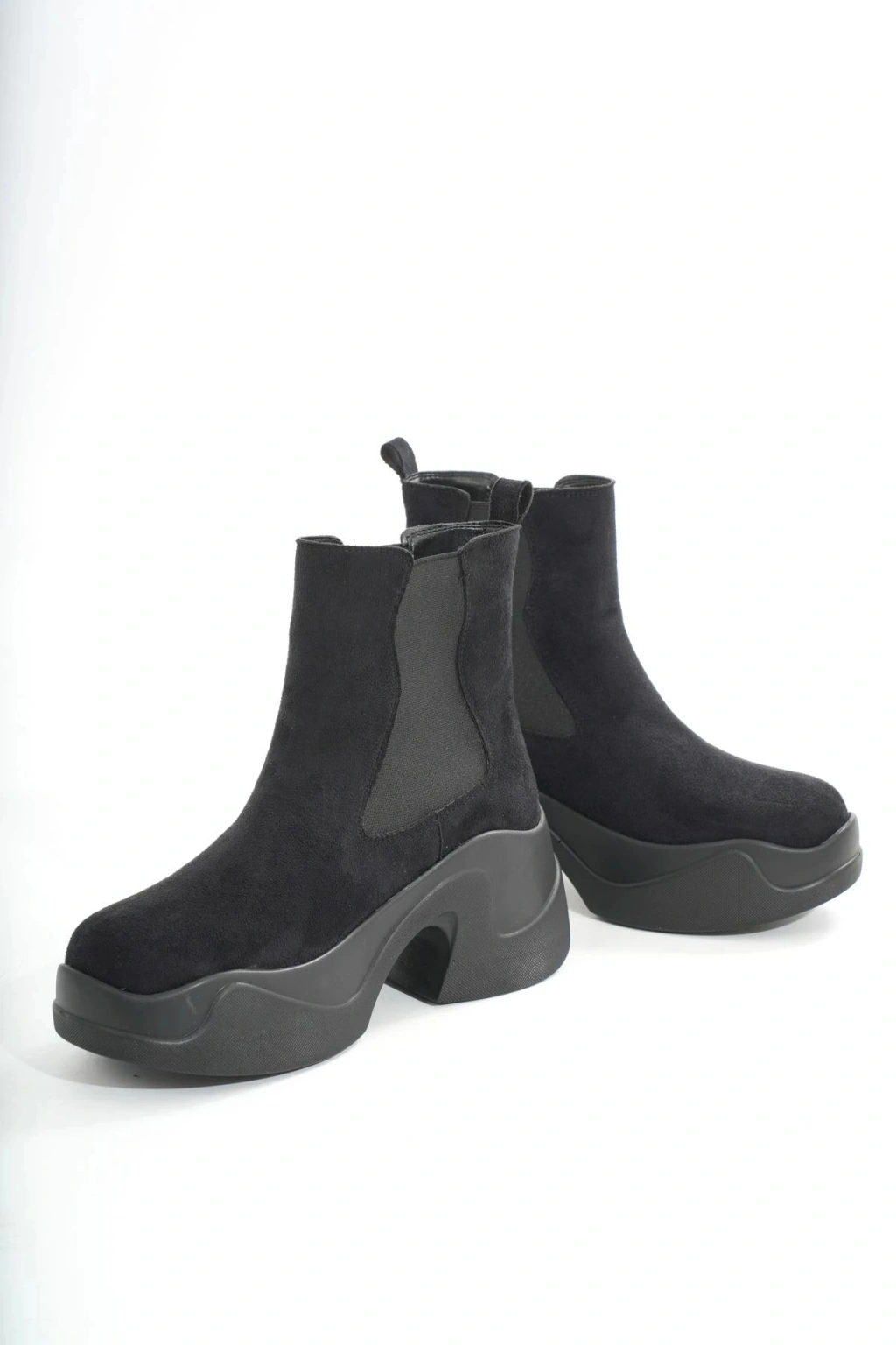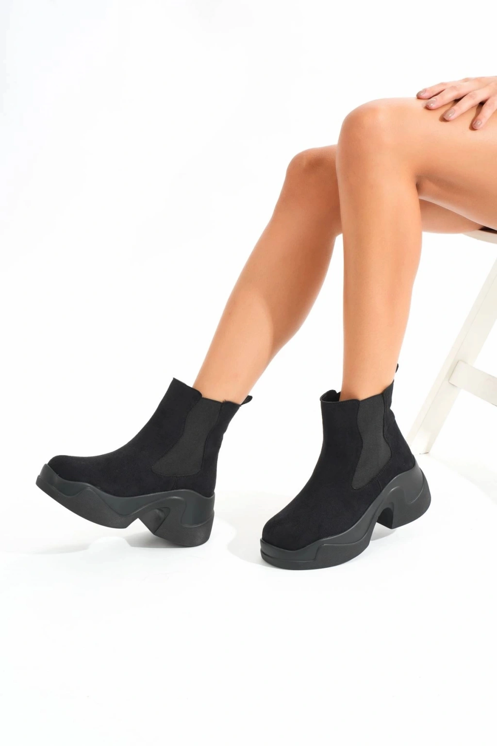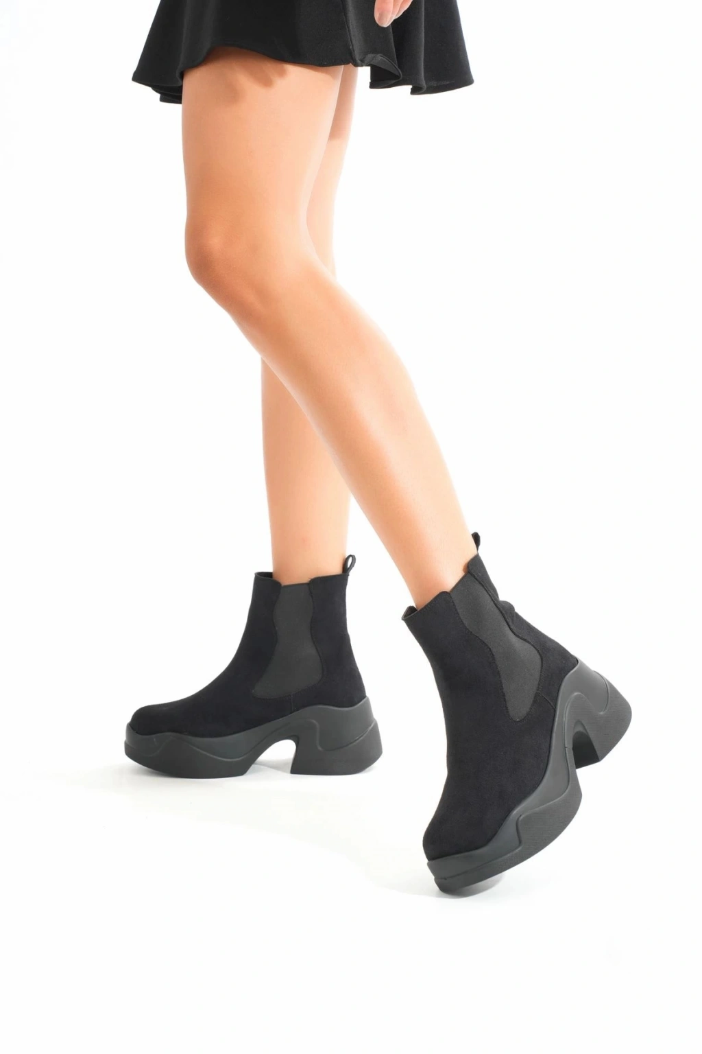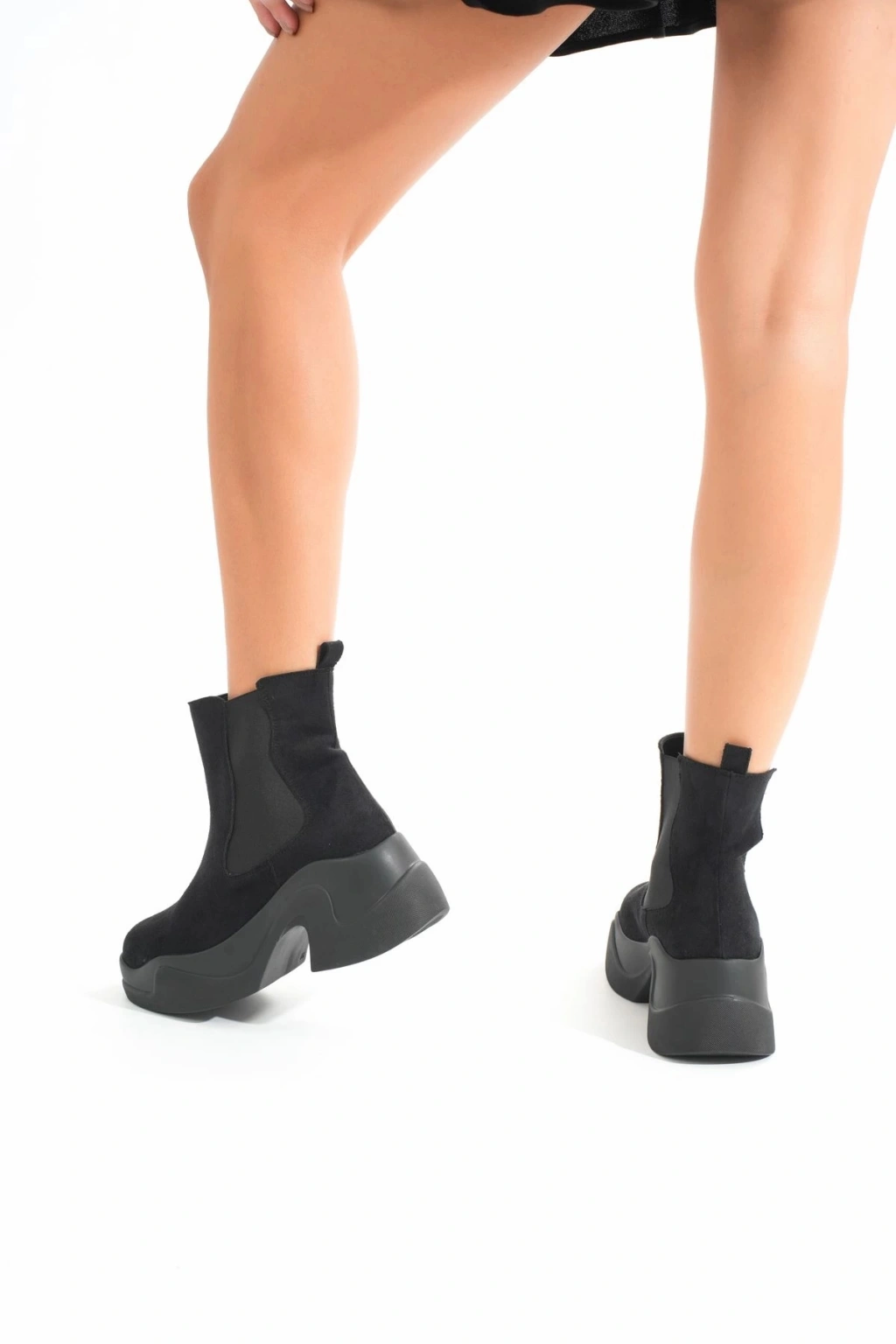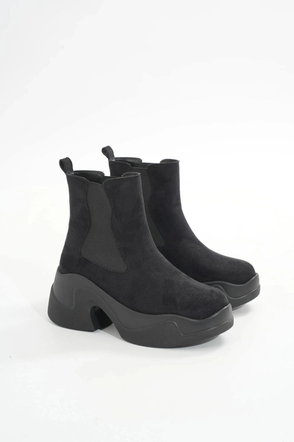 FZ-2400 Siyah Süet Yüksek Tabanlı Lastikli Günlük Kadın Bot