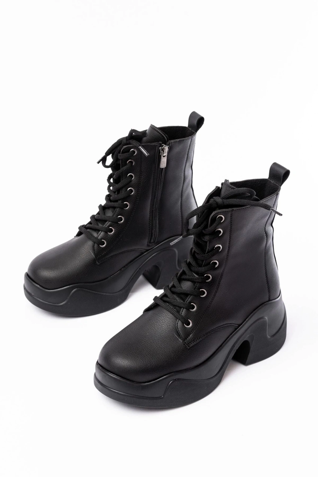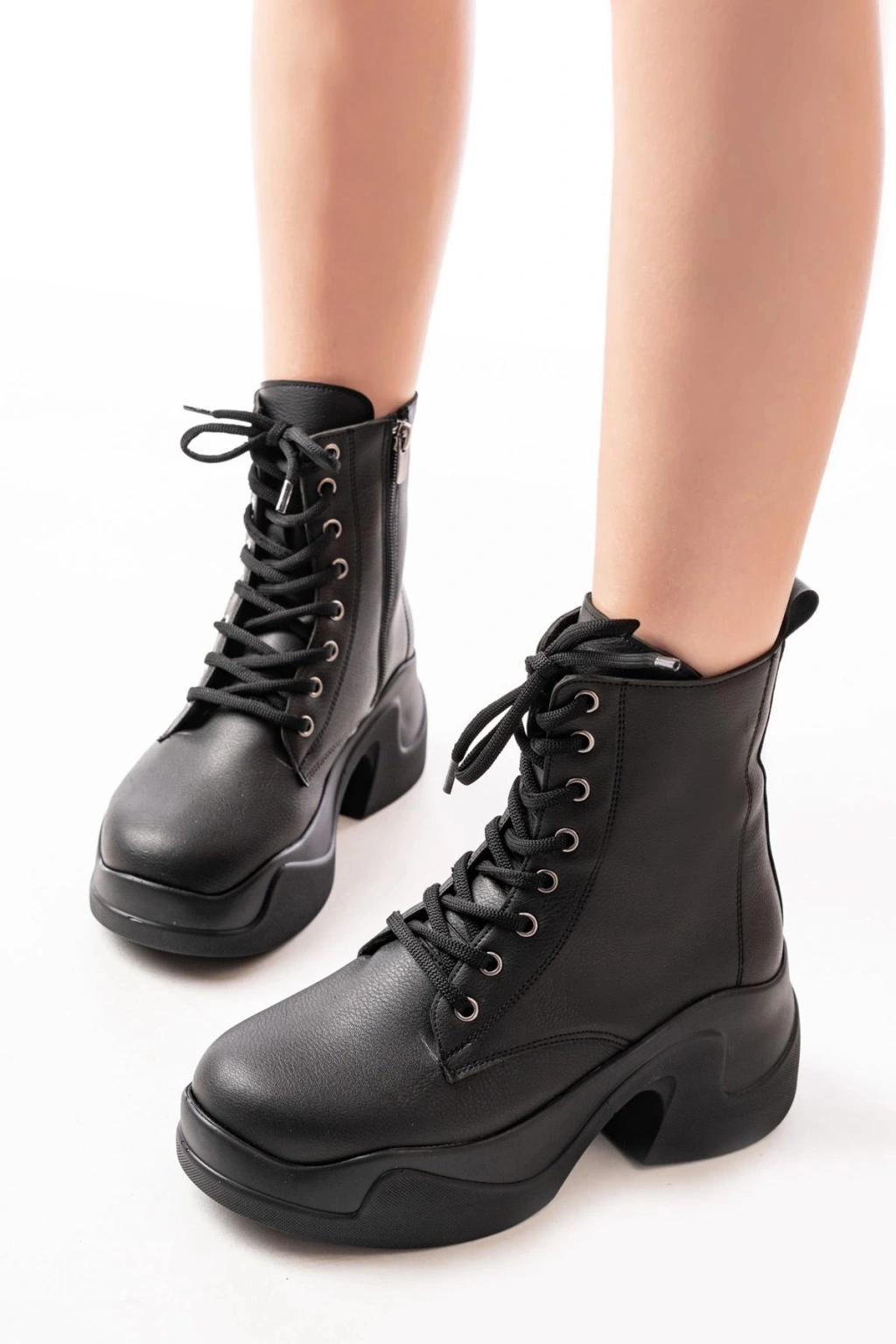 FZ-2550 Siyah Yüksek Tabanlı Bağcıklı Fermuarlı Günlük Kadın Bot